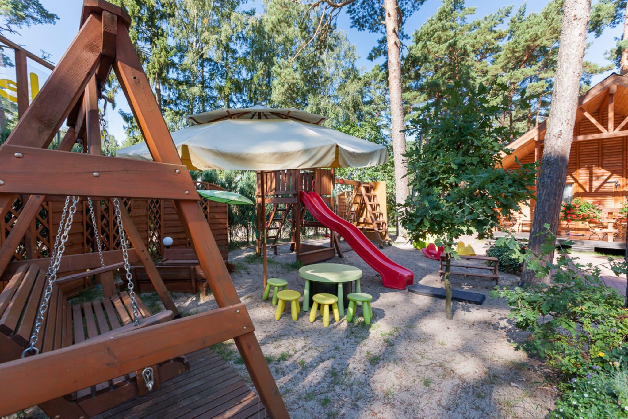 Stueetage: (åbent køkken(elkedel, brødrister, kaffemaskine, mikrobølgeovn, opvaskemaskine , køle-fryseskab), stue / spisestue(dobbeltsovesofa, Fjernsyn(fladskærm, parabol, Tyske TV-kanaler), spisebord), soveværelse(dobbeltseng), soveværelse(enkeltseng, enkeltseng), badeværelse(bruser, håndvask, toilet), komfur(Komfur med to kogeplader, glaskeramisk, elektrisk)) Loft: (svalegang soveværelse(enkeltseng, enkeltseng)) Reception, Internetadgang, Cykeludlejning, Legeområde, Græsplæne, vaskemaskine(deles med andre gæster, betalt), varme(elektrisk), terrasse(overdækket), have(deles med andre gæster, indhegnet, 1600 m2), havemøbler, solstole, grill(trækul), sandkasse(deles med andre gæster), rutsjebane(deles med andre gæster), barnestol, havepejs, Gyngestativ, baby crib(free)