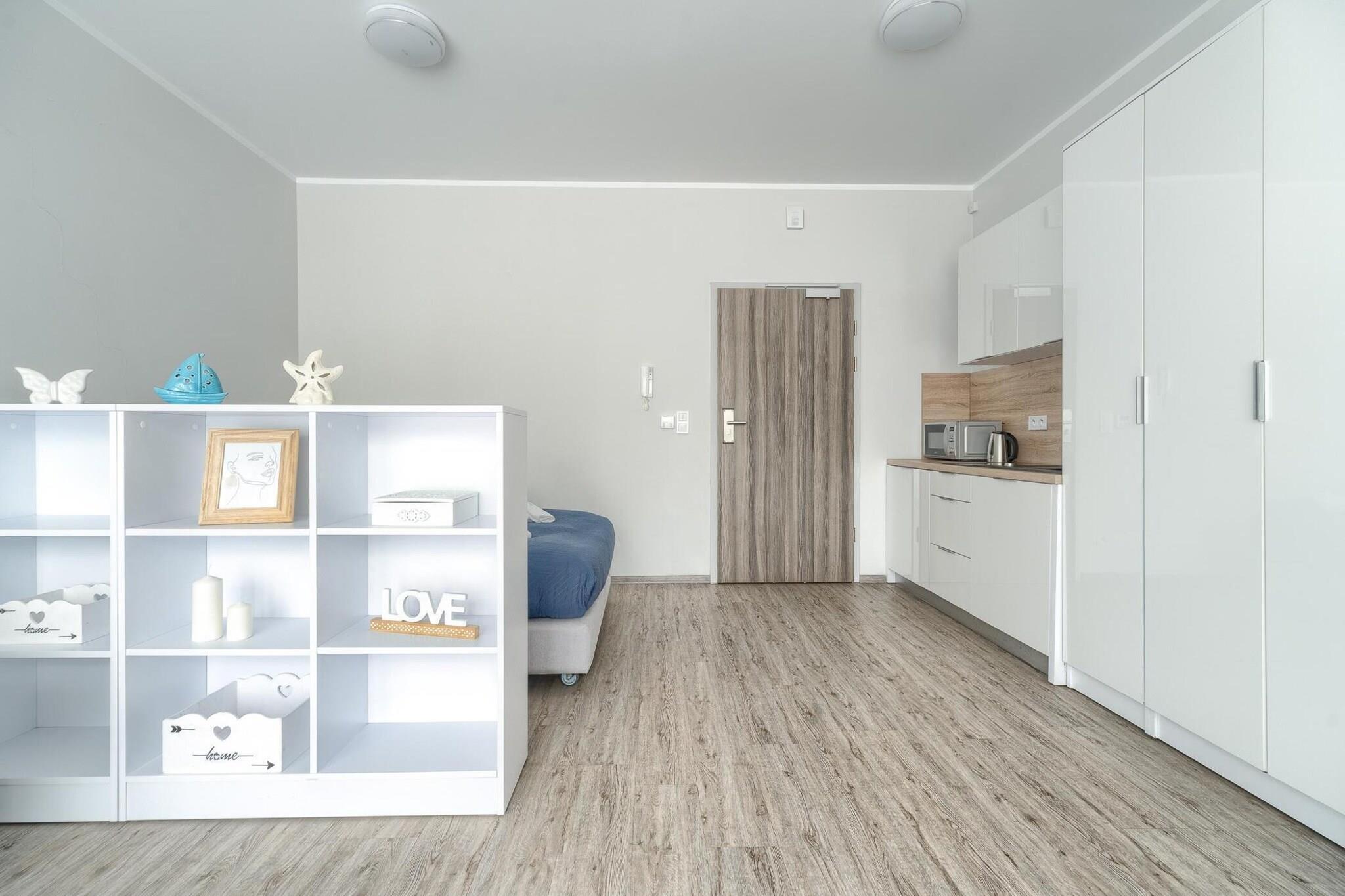 Kompleks af ferielejligheder i centrum af feriestedet, 70 m fra stranden ved havet. Caféer og restauranter i umiddelbar nærhed. Der er også et hotel med SPA-faciliteter i nærheden (indendørs swimmingpool, sauna, spabad), hvor du kan benytte disse attraktioner mod et ekstra gebyr. Komfortabel lejlighed i stueetagen. Det har en rummelig, overdækket terrasse med et sæt havemøbler. Lejligheden består af en rummelig stue med en separat soveværelse alkove med en komfortabel 2-personers seng. I stuen er der en dobbelt sovesofa, tv og et bord med stole. Rummet er forbundet med et lækkert køkken. Lejligheden har et badeværelse med badekar og bruser. Centralvarme. Trådløst internet er tilgængeligt. Der er en sikker parkeringsplads i kompleksets indhegnede område. Prisen for dit ophold inkluderer 1 parkeringsplads. Prisen for opholdet inkluderer: el- og vandforbrug, varme, parkering, internet. En barneseng og en høj stol er tilgængelige efter anmodning. Pobierowo er et feriested i det vestpommerske voivodskab. Det ligger ved Østersøens kyster, i centrum af den maleriske Rewal-kyst. Som det sømmer sig for en kystby, tilbyder Pobierowo turister en ren strand og et bevogtet svømmeområde. Her er også en fiskebase, perfekt som baggrund for souvenirbilleder. Børn vil blive glade for et besøg i Whale Park i den nærliggende Rewal (ca. 7 km), med rigtige havgiganter. I dårligt vejr vil en ideel mulighed være en tur til en af flere offentlige indendørs swimmingpools. Rebparken vil også være fantastisk underholdning for hele familien eller en gruppe venner. Byens og hele regionens stolthed er den renoverede smalsporede jernbane, som giver dig mulighed for at tage på en charmerende tur til nærliggende feriesteder.
