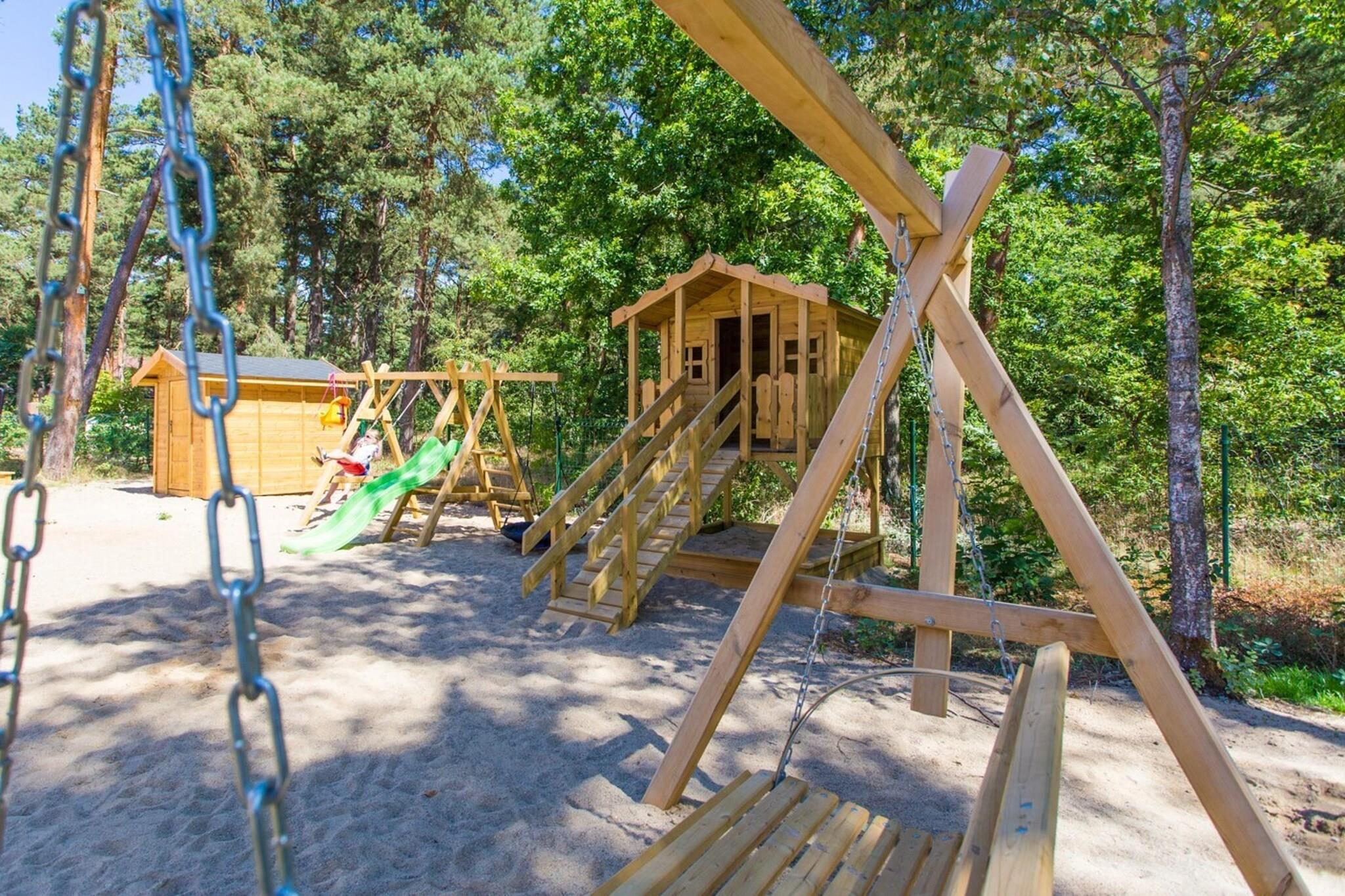 Stueetage: (åbent køkken(kogeplade(Komfur med to kogeplader, induktion), elkedel, opvaskemaskine , køle-fryseskab), stue / spisestue(dobbeltsovesofa, Fjernsyn(fladskærm), spisebord(6 personer)), badeværelse(bruser, håndvask, toilet)) På 1. etage: (soveværelse(dobbeltseng), soveværelse(enkeltseng, enkeltseng)) Legeområde, Græsplæne, terrasse(overdækket), have(deles med andre gæster, indhegnet), havemøbler, solstole, sandkasse(deles med andre gæster), rutsjebane(deles med andre gæster), barnestol, Gyngestativ, baby crib(free)