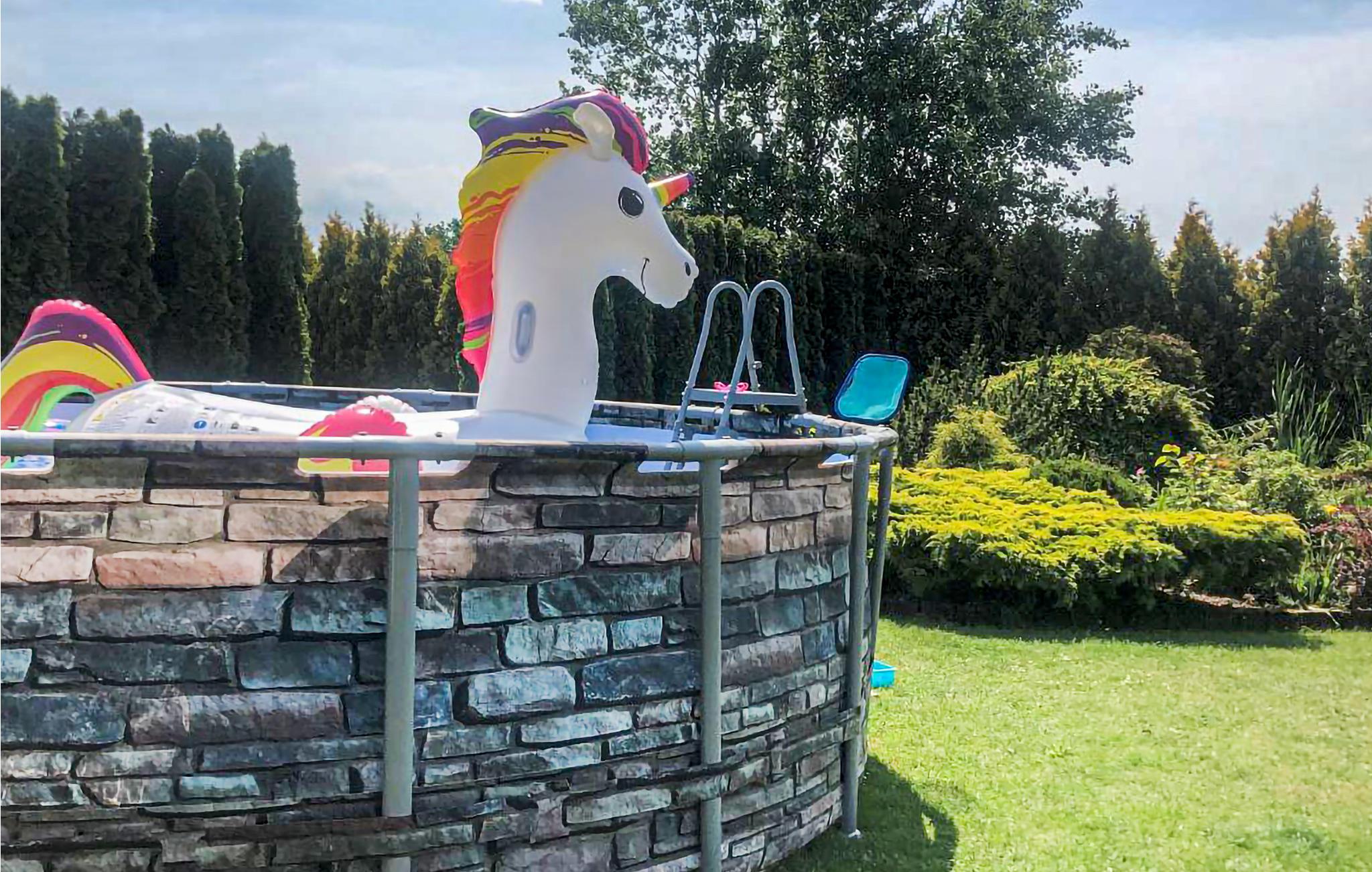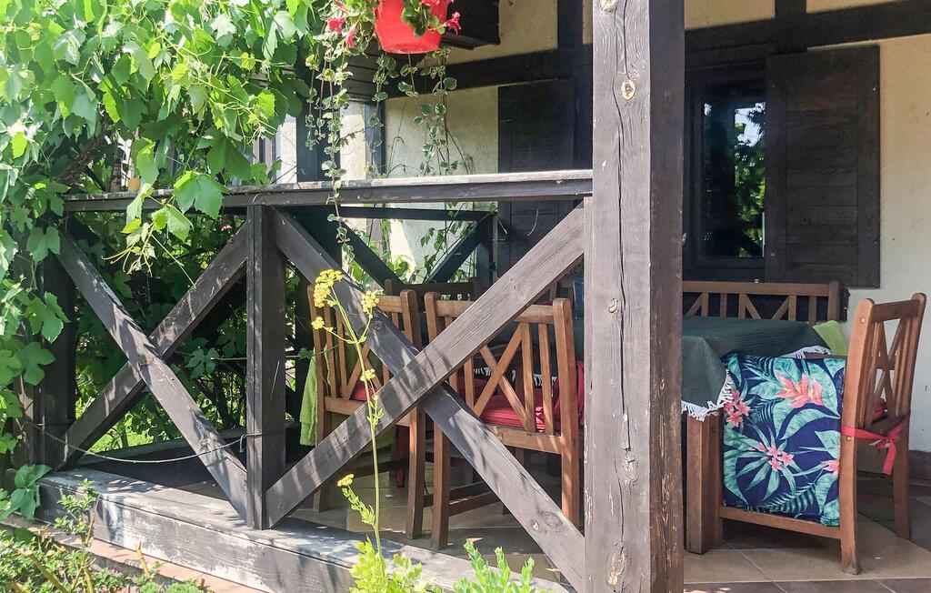 Feriehus i byen Podamirowo. Dette dejlige landhus er indrettet komfortabelt med moderne møbler. Huset ligger på en indhegnet grund, har god plads såvel inde som ude, til otte personer – perfekt til den store familie eller gruppe af venner. I haven findes en lille og en stor pool, der deles med et andet hus ligesom grillhuset også er til fælles afbenyttelse. Nyd udsigten over de rolige omgivelser og skulle der komme en kølig aften, så tænd op i kaminen og mærk hvordan varmen hurtigt breder sig. I september og oktober kan I tage på tur i skoven, sammen med husets tysktalende ejer, for at samle svampe. Hun giver gode råd om, hvilke svampe der er gode, og hvor I finder dem.