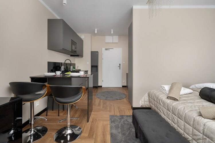 En ferielejlighed i et moderne resortkompleks med swimmingpool, sauna og spabad. Beliggende i hjertet af en fashionabel og populær kurby. Denne ferielejlighed ligger på 4. sal (elevator tilgængelig) med balkon og en fantastisk udsigt over det omkringliggende område. Lejligheden er et åbent rum med et separat soveværelsesområde (to enkeltsenge, der kan sættes sammen til en dobbeltseng), en spiseplads og et veludstyret køkken. Der er også et badeværelse med bruser. Gulvvarme og aircondition er også tilgængelige. Trådløst internet er tilgængeligt. Lejligheden har en gratis underjordisk parkeringsplads. Komplekset tilbyder gæsterne gratis adgang til en indendørs swimmingpool, der er åben året rundt, med separat børnepool, sauna og spabad. Gæsterne har også gratis adgang til et vaskerum og en ismaskine. Der er også et fitnessrum og et legerum til børnene. Prisen inkluderer: el- og vandforbrug, aircondition, varme, swimmingpool, sauna, spabad, fitnessrum, legerum til børnene og internet. Polanica Zdrój er en kurby ved forbjergene. Byen er meget velholdt og fascinerende med sine mange pladser, promenader og parker. Der er masser af steder at slentre og behagelige cykelruter. Der er adskillige gode restauranter, og om aftenen er det værd at se det fortryllende lys- og musikshow ved byens springvand. Der er også en sommerkælkebane. Bjergvandrere vil nyde en tur til Errant Rocks i Taffelbjergene. Om vinteren kan skiløbere nyde det professionelle skisportssted Zieleniec (17 km fra Polanica).