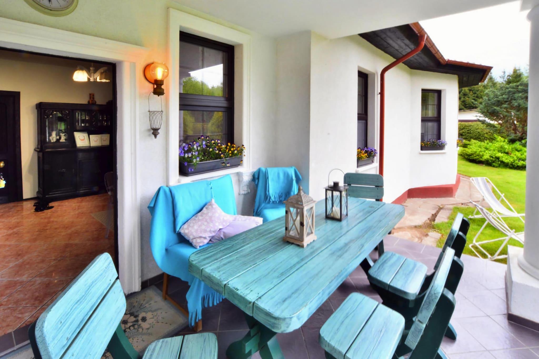 Stor ferievilla med moderne faciliteter i idylliske landlige omgivelser. Der er stilhed, fred og uforstyrret kontakt med naturen omkring. Huset har en stor, privat have med tilstødende skov. Rummeligt, veludstyret hus med overdækket terrasse. I stueplan er der stor stue med TV, pejs og sofagruppe. I stueetagen er der desuden spisestue med stort bord, veludstyret køkken (+ separat spisekammer), 2 soveværelser og badeværelse med badekar. På første sal er der en ekstra stue med lounge møbler, 4 soveværelser (inklusive 1 soveværelse alkove i stuen) og et badeværelse med bruser. Centralvarme + pejs (træ til rådighed mod et ekstra gebyr). Trådløst internet er tilgængeligt. Huset er beliggende blandt skovene, nær floden (fiskeri, kajaksejlads). Der er gode muligheder for at vandre og cykle rundt. Der er pejs og grillpavillon (delt med værten). Der er et værtshus i nærheden, hvor du kan bestille sunde, hjemmelavede måltider (de fleste produkter fra naturlig avl og dyrkning). Slow food, slow cooking, slow living – det er reglerne her. Værtinden bager kager, laver konserves til gæsterne og inviterer dem til at smage sine egne likører. Den venlige værtinde taler tysk og kan give mange tips om lokale attraktioner. Der er et offentligt tilgængeligt havehus med pejs og samovar. Prisen for opholdet inkluderer: vand- og elforbrug, internet, parkering, turistskat. Barneseng, højstol på forespørgsel. Stilhed, skove og uforurenet vand fremmer afslapning for mennesker, der kan lide naturen. Omgivelserne tilskynder til vandreture, svampeplukning, fiskeri og blodløs jagt. Ridderborgen i Krag ved Zamkowe-søen (9 km), Polanów (2 km), og der Vandmøllekomplekset, kajakture, Den Røde Bro over Grabowa-floden. Okay. 5 km til naturreservatet Wielin (der er også en strand med badeplads ved søen Wielin).