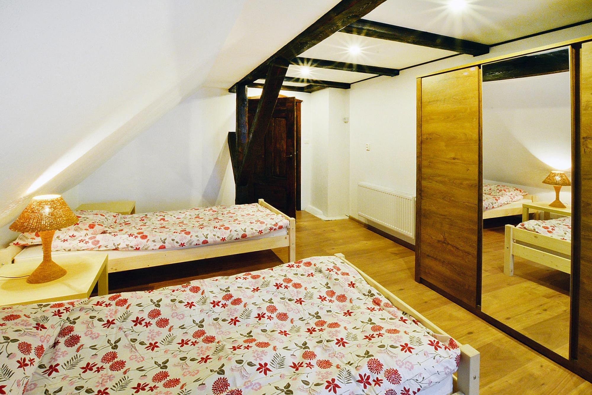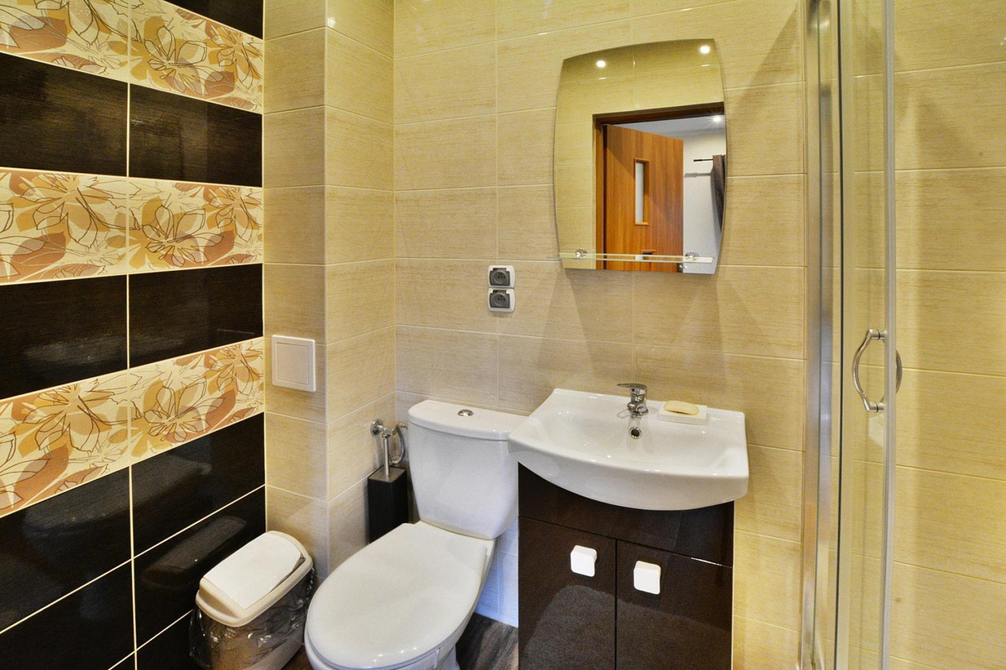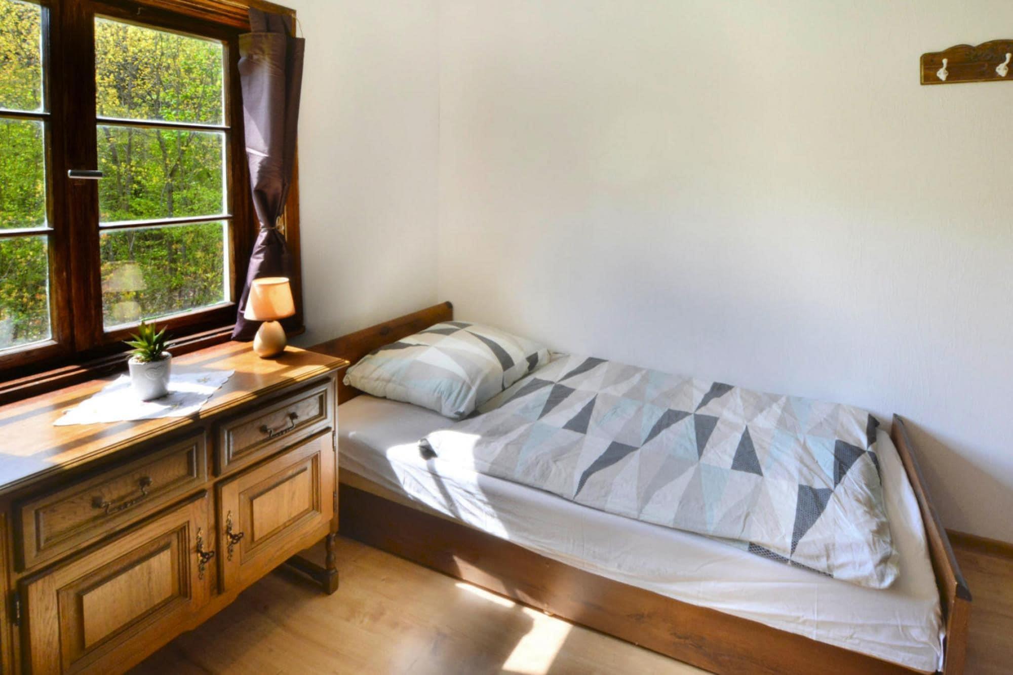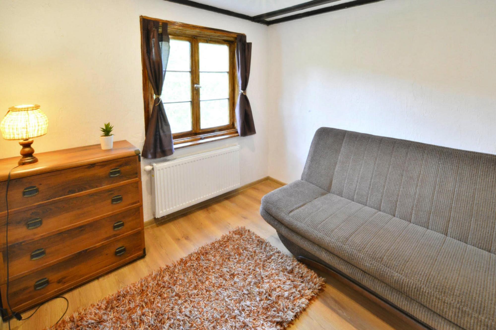Midt i skoven, i en oase af fred og ro, ligger et komfortabelt feriehus i en restaureret skovfogedhytte. Gæsterne råder over hele 10.000 m2 privat areal - en ideel ramme for alle former for familiespil og underholdning. Feriehuset er i 2 etager. I stueetagen er der en rummelig stue med stort bord, pejs og TV. Fra stuen er der direkte udgang til terrassen med udsigt over den private dam. I stueetagen er der 3 separate soveværelser, 4 badeværelser (3 med bruser, 1 med badekar) og et veludstyret køkken (inklusive komfur, ovn, kaffemaskine, mikroovn, opvaskemaskine). På første sal er der yderligere 5 soveværelser og 3 badeværelser (2 med badekar, 1 med bruser). Der er også et ekstra tekøkken ovenpå. Centralvarme. Huset er udstyret med vaskemaskine. Trådløst internet er tilgængeligt. I det velholdte område kan gæsterne nyde en sommer swimmingpool (vandet er ikke opvarmet, åbent fra 15. juni til 15. september), en parkeringsplads, en legeplads, haven shelters, bålplads og grilludstyr. Der er også en charmerende dam med en romantisk bro. Ejeren af ??anlægget tilbyder lokale produkter, som hun personligt tilbereder: hjemmebagt brød, syltetøj og andre konserves. Prisen for opholdet inkluderer: sengelinned, håndklæder, el- og vandforbrug, ophold med hund (max 1), slutrengøring, parkering, internet. Attraktioner i området: Denne placering er ikke kun hvile og afslapning, men også svampeplukning, skovvandring, cykling og bærplukning. Den fred og ro, der hersker her, giver dig mulighed for at bryde væk fra hverdagen, fra livets høje tempo og nyde fuglesangen, frøernes kvækken og frem for alt ren luft. Der er cirka 20 km til den store provinsby (Koszalin), hvor der er talrige restauranter, caféer, butikker og store indkøbscentre. Der er også et stort, attraktivt vandland i Koszalin. Den nærmeste strand ved havet er i Lazy (også Mielno og Dabki i nærheden).