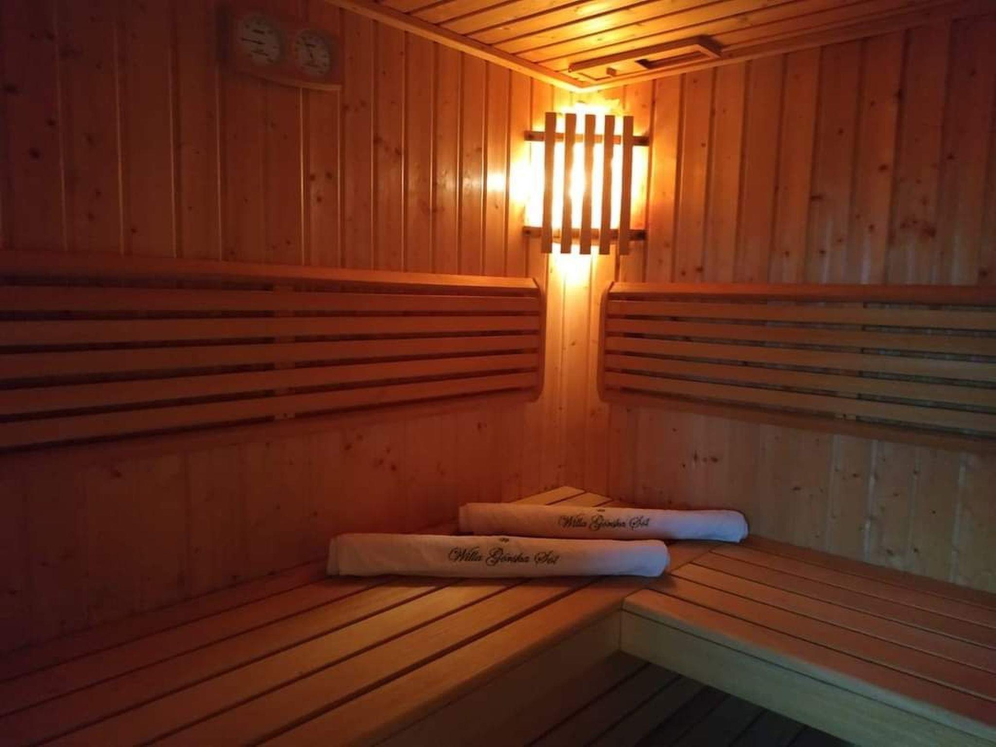 The living space totals 100m², with a modern and fully-equipped kitchen (10m²) on the ground floor, including a fridge with a freezer compartment, a stove, a microwave and a coffee machine. Next to it there is the cosy living room with a large dining table and comfortable chairs. The area with a sofa and fireplace stove occupies around 20m². An LCD TV with 40 international channels provides entertainment. A special stereo system with a CD player rounds off the entertainment programme. One of the bedrooms is on this floor, furnished with a comfortable double bed (180 x 200cm) that can be easily converted into two single beds (each 90cm wide). The bedroom also has a wardrobe, a dresser and two bedside tables. On the ground floor there is also a little bathroom with a WC and shower.