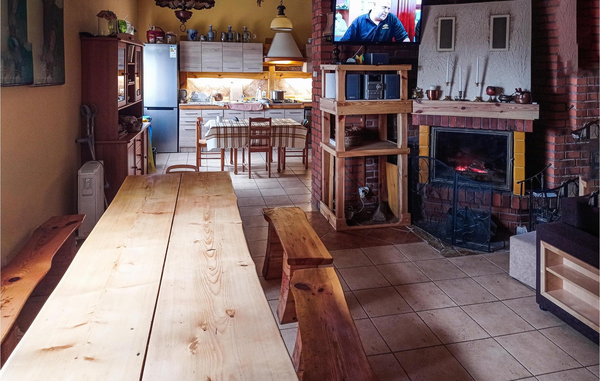 Med en skøn beliggenhed og med fantastisk udsigt over landskabet byder dette feriehus på plads til en stor familie eller en gruppe venner. Den hyggelige indretning med rustikke trævægge og bjælker giver huset sin rustikke charme og skaber en hyggelig feel-good stemning i rummene. Efter en aktiv dag kan I slappe af i saunaen, spise ved det lange træbord og ved slutningen af ??en skøn dag få jer til at føle jer godt tilpas sammen i opholdsstuen og snakke til langt ud på aftenen, mens flammerne i pejsen knitrer sagte.
