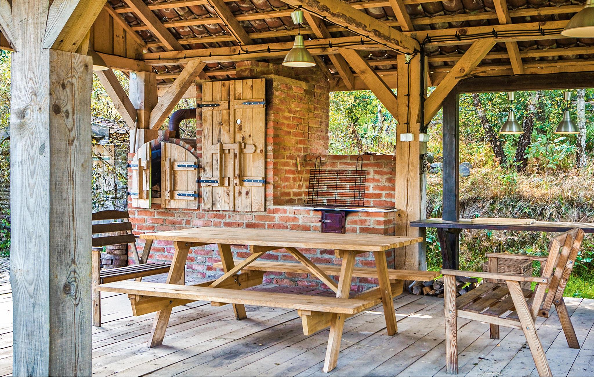 Dette rummelige feriehus har en unik beliggenhed i landsbyen Roje og tilbyder friluftsmennesker en skøn oase at slappe af. Lad udsigten over det grønne inspirere jer, mens I laver mad, og glæd jer til hyggelige måltider i den komfortable spisestue. Nyd den rustikke atmosfære med rolige læsestunder eller afslut en begivenhedsrig dag over et glas vin på sofaen.