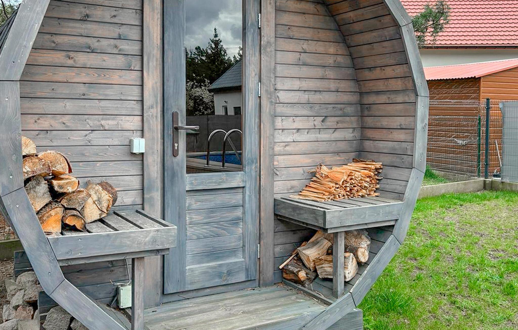 Dette stilfulde feriehus på to etager tilbyder jer moderne komfort og en hyggelig atmosfære - ideel til en afslappende pause. De kærligt designede stuer lægger op til at slappe af, mens den rummelige veranda er det perfekte sted til jeres morgenmad i morgensolen. Om aftenen kan I samles omkring bålpladsen i den fælles have eller slappe af i det udendørs spabad. Her finder I alt hvad I behøver for et uforglemmeligt ophold - en perfekt kombination af elegance og komfort.