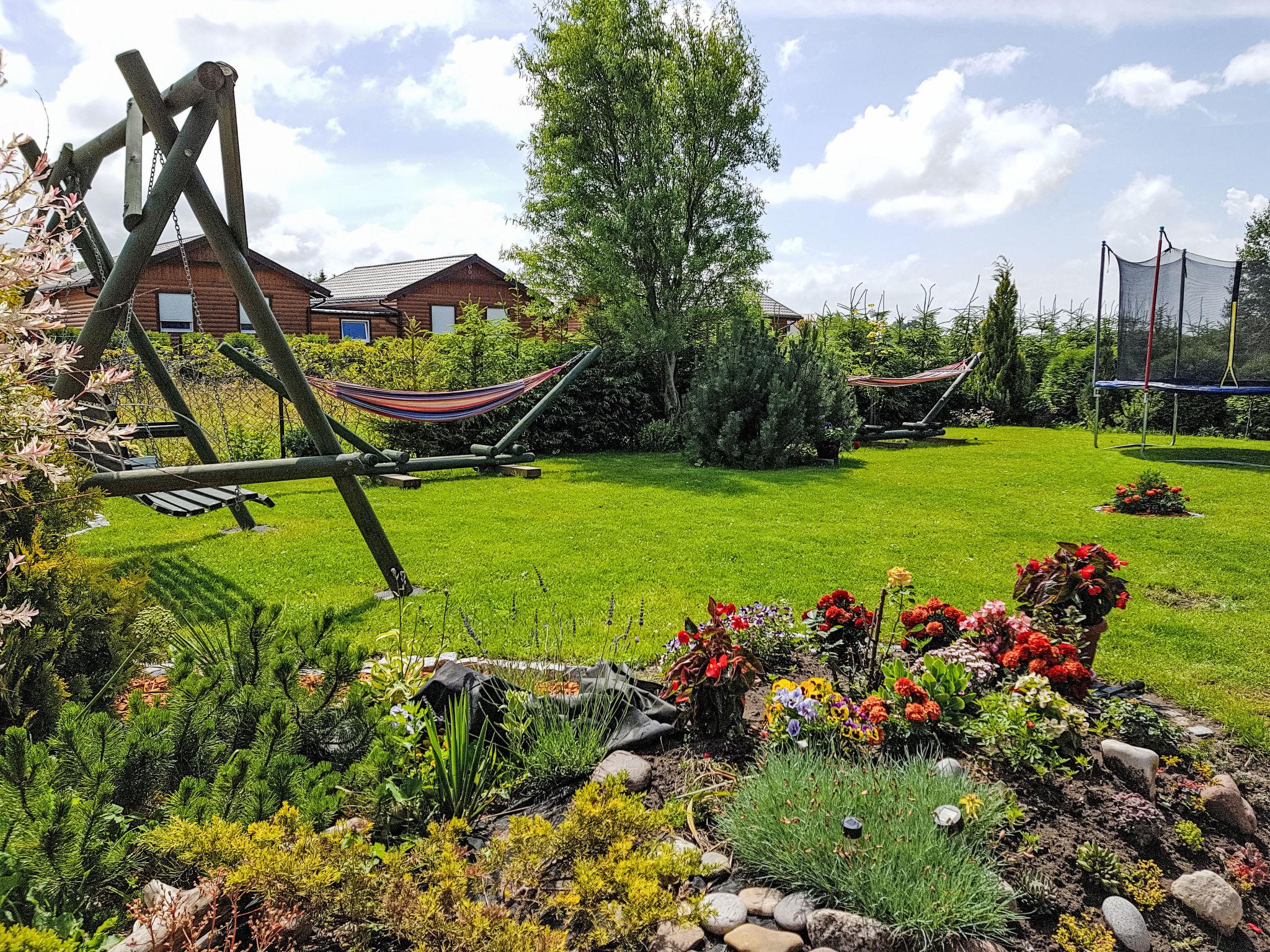 Cosy holiday village "Zacisze Baltyku", built in 2016, renovated in 2020. On the outskirts, in a sunny position, 1 km from the beach, in the countryside. For shared use: property 1'200 m2 (fenced), well-kept garden, meadow. Children's playground (slide, swing, sandbox). In the house: WiFi, trampoline, tumble dryer. Motor access to the grounds (via unmade road). Parking at the house. Shop, grocery 900 m, supermarket 15 km, restaurant 900 m, bus stop 1.1 km, sandy beach 1 km, indoor swimming pool 5 km, public bathing area 1 km. Tennis 4 km, minigolf 4 km, riding stable 4 km. Nearby attractions: Jaroslawiec 4 km, Plaza Polski Dubaj 4 km, Motylarnia 4 km. Please note: the photograph shows a typical example. Additional accommodations can be booked. The holiday properties may differ in living space, floorplan, equipment and furnishing.