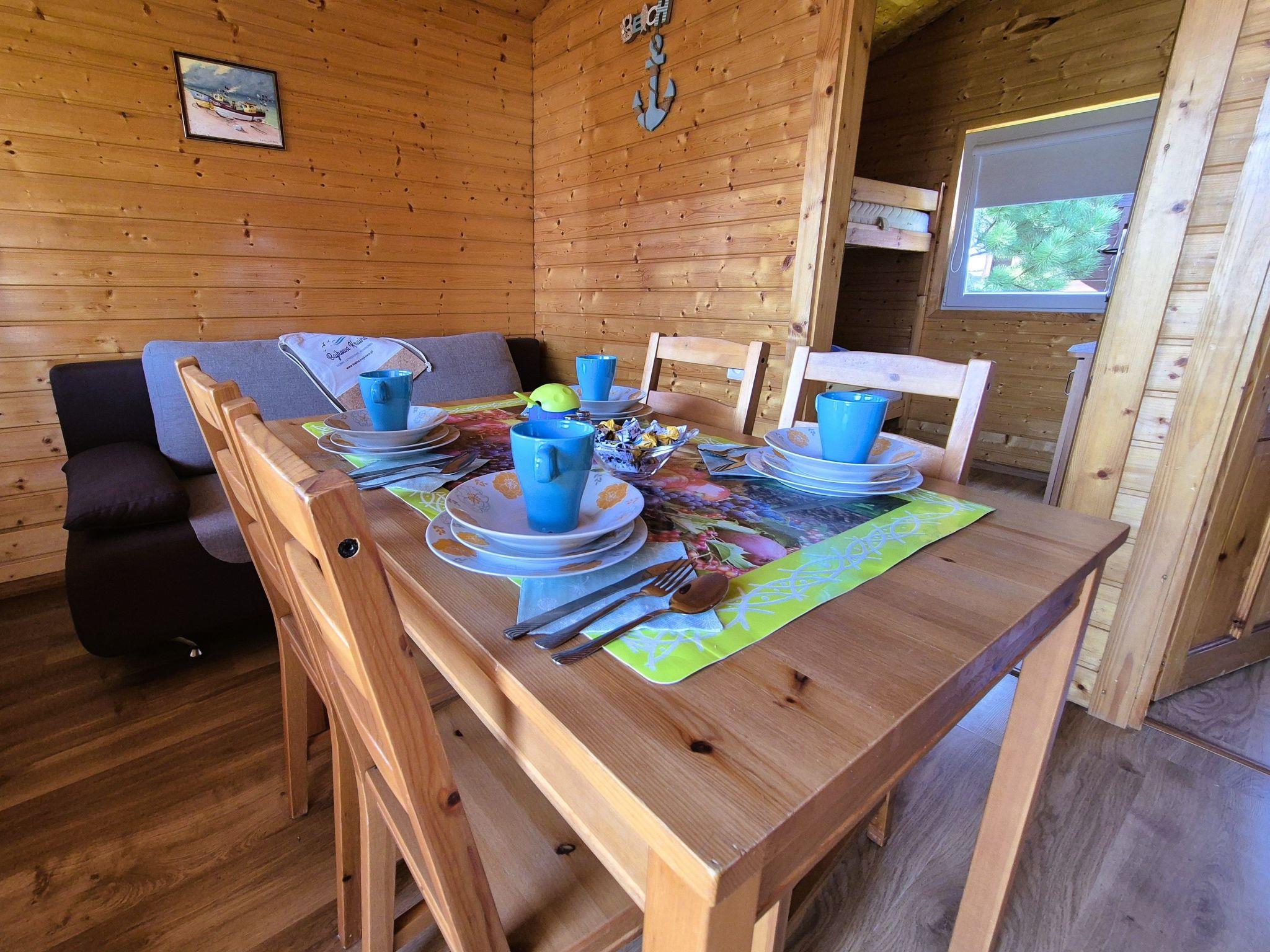 The interior of each cottage is thoughtfully designed to ensure maximum comfort for guests. A spacious living room with a comfortable sofa, table and chairs and a TV provides the ideal place to spend time together. The facilities are complemented by an electric cooker, a capsule coffee machine and a kettle, making it easy to prepare your favourite drinks or meals. Two cosy bedrooms are also available, where everyone will find a quiet corner to relax.