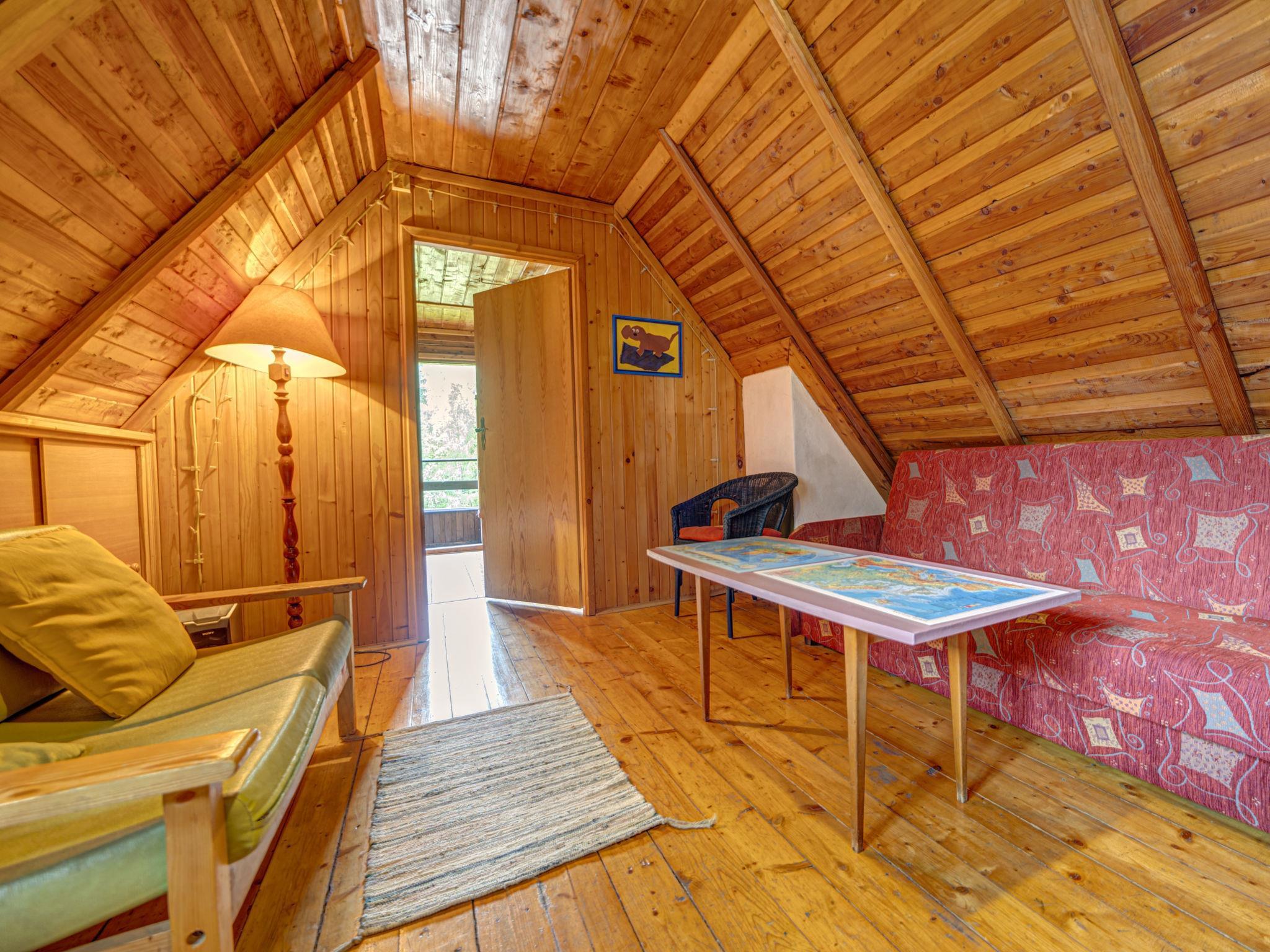 6-room house 130 m2 on 3 levels. Simple furnishings: open living/dining room with open-hearth fireplace, satellite TV and hi-fi system. Exit to the terrace. 1 room 11 m2, with sloping ceilings with 2 beds (90 cm, length 200 cm). 1 room 8 m2, with sloping ceilings with 1 french bed (140 cm, length 190 cm). Small, open kitchen (4 hot plates, oven, microwave, electric coffee machine). Shower/WC. On the lower ground floor: sep. WC. Top floor: (steep stair), 1 room 10 m2, with sloping ceilings with 2 beds (90 cm, length 191 cm). Open interconnecting room 10 m2, with sloping ceilings with 1 double sofabed. 1 room 11 m2, with sloping ceilings with 2 beds (90 cm, length 190 cm). Exit to the balcony. Small balcony, terrace. Facilities: baby cot for up to 3 year olds. Internet (DSL/LAN, free). Maximum 1 pet/ dog allowed.
