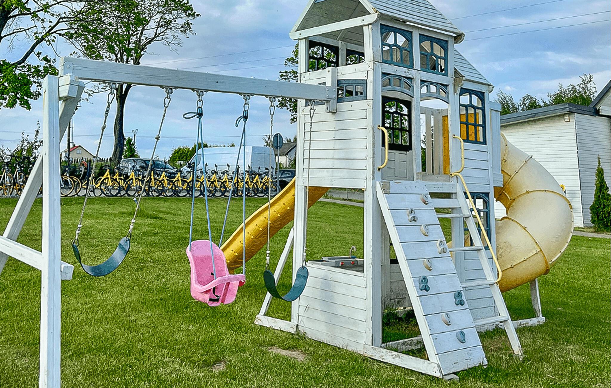 I dette hyggelige træferiehus i Sarbinowo venter jer en ferie fuld af komfort og afslapning. Den moderne indretning fordelt på to etager tilbyder alt, hvad I har brug for til et behageligt ophold. De varme træelementer skaber en indbydende og hyggelig atmosfære, som straks får jer til at føle jer hjemme. Start dagen med morgenmad på terrassen eller nyd en kop kaffe på balkonen, mens I planlægger dagens aktiviteter.