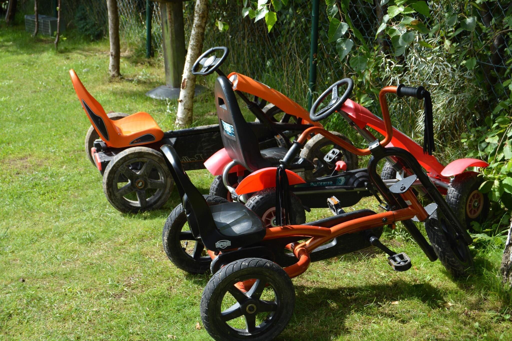 Stueetage: (åbent køkken(kogeplade(Komfur med to kogeplader, elektrisk), elkedel, brødrister, emhætte, kaffemaskine, mikrobølgeovn, opvaskemaskine , køle-fryseskab), stue / spisestue(dobbeltsovesofa, Fjernsyn(fladskærm, parabol, Tyske TV-kanaler), spisebord, DVD-afspiller, radio), badeværelse(bruser, håndvask, toilet, vaskemaskine)) På 1. etage: (soveværelse(enkeltseng, enkeltseng, dobbeltseng), soveværelse(enkeltseng, dobbeltseng), toilet(håndvask, toilet)) Reception, Internetadgang, Parkering, Bordtennis, Legeområde, Græsplæne, babybadekar, balkon, varme(elektrisk), terrasse(overdækket), have(deles med andre gæster, indhegnet), havemøbler, solstole, grill(trækul), trampolin(deles med andre gæster), sandkasse(deles med andre gæster), rutsjebane(deles med andre gæster), bordfodbold(deles med andre gæster), fitnessapparater(deles med andre gæster), cykler til rådighed, barnestol, strygebræt, strygejern, Solcreme, Gyngestativ, baby crib(free)