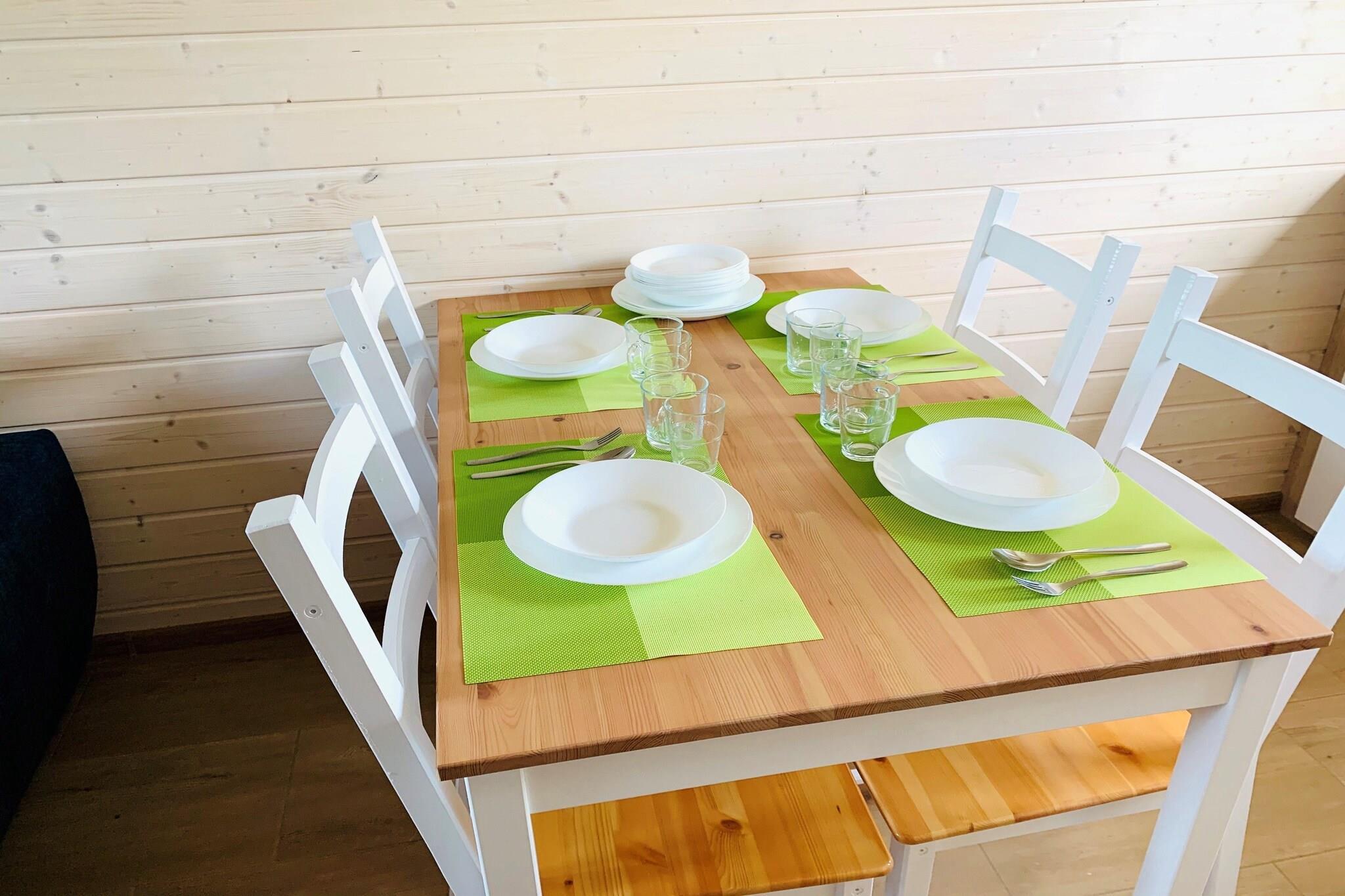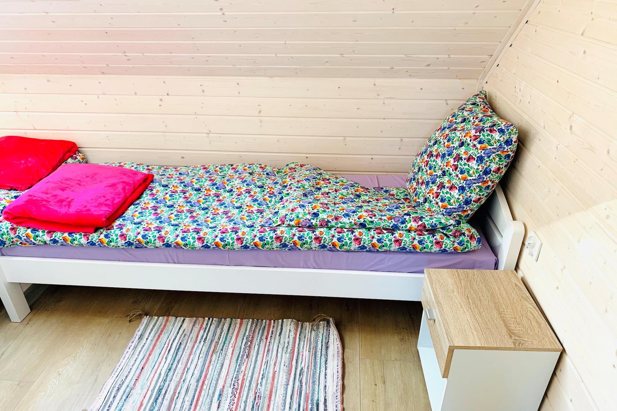 Stueetage: (åbent køkken(elkedel, brødrister, komfur(Komfur med en kogeplade, induktion), kaffemaskine, mikrobølgeovn, køle-fryseskab), stue / spisestue(dobbeltsovesofa, Fjernsyn(fladskærm), spisebord), badeværelse(bruser, håndvask, toilet)) På 1. etage: (soveværelse(enkeltseng, dobbeltseng), soveværelse(enkeltseng, dobbeltseng)) Reception, Internetadgang, Legeområde, Græsplæne, babybadekar, vaskemaskine(deles med andre gæster, betalt), varme(elektrisk), terrasse(overdækket), have(deles med andre gæster, indhegnet, 1000 m2), havemøbler, solstole, grill(trækul), trampolin(deles med andre gæster), rutsjebane(deles med andre gæster), barnestol, Gyngestativ, baby crib(free)
