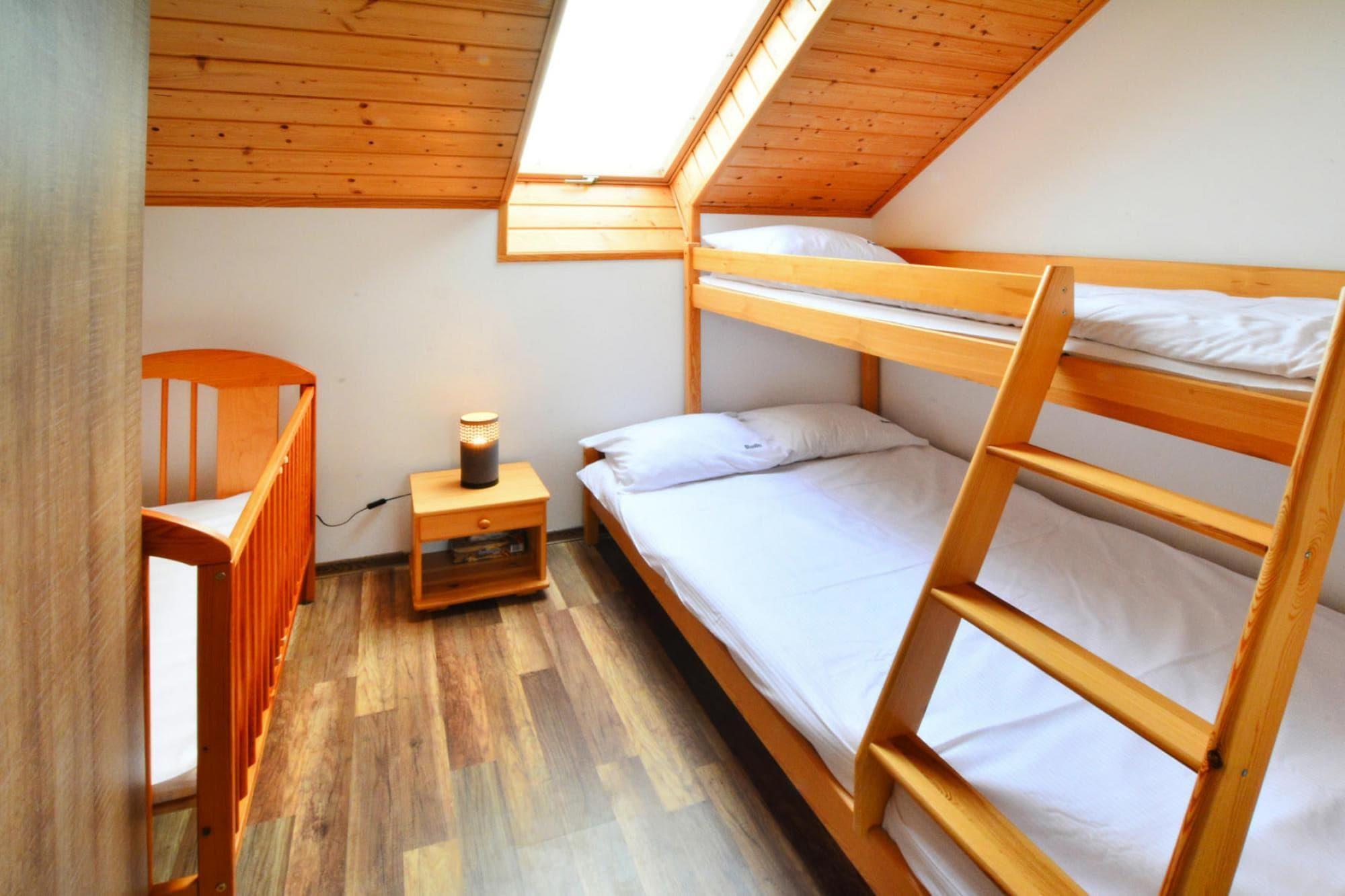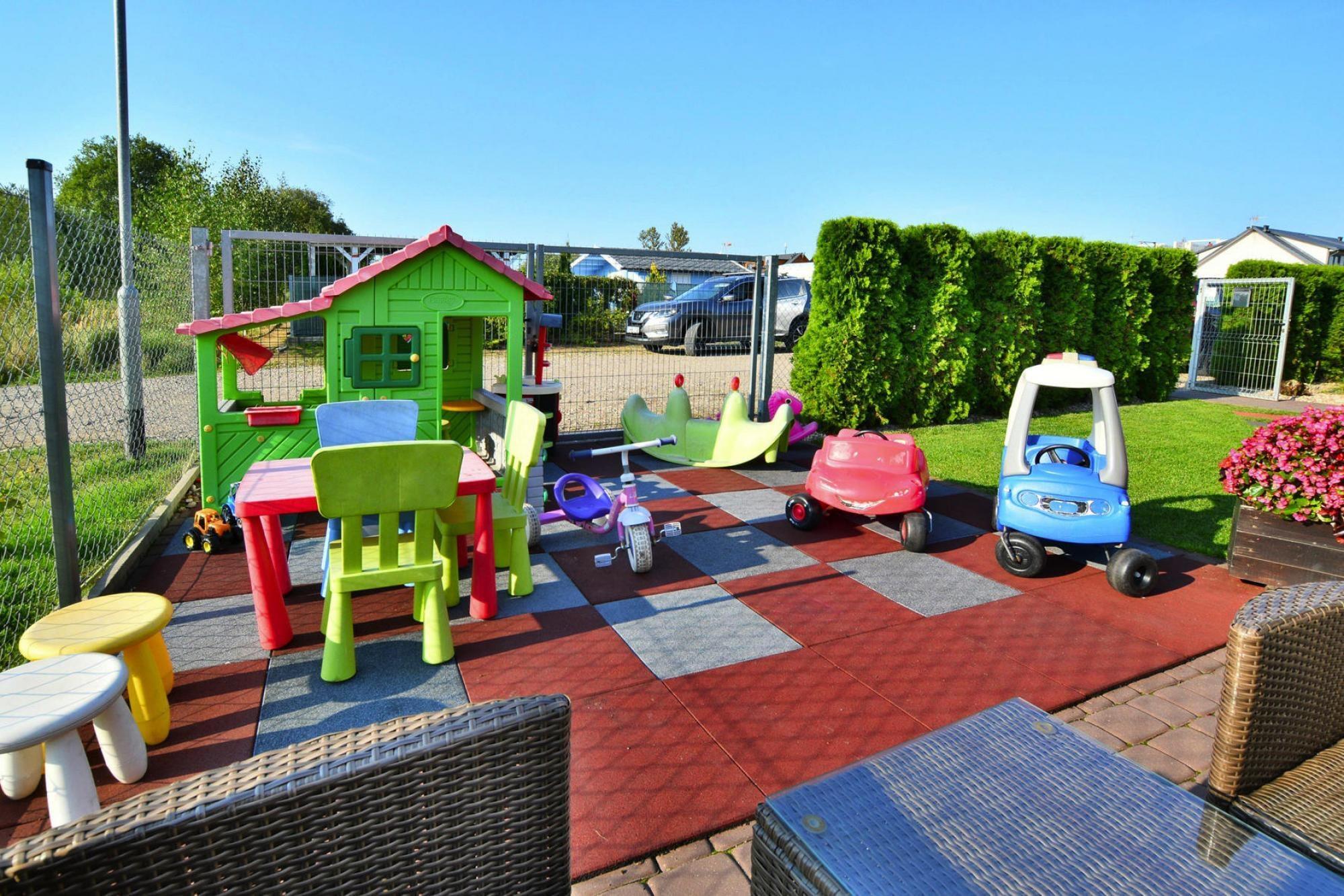 Åbent køkken(kogeplade(Komfur med to kogeplader, induktion), elkedel, brødrister, kaffemaskine, mikrobølgeovn, køle-fryseskab), stue / spisestue(dobbeltsovesofa, Fjernsyn(fladskærm, parabol, Tyske TV-kanaler), spisebord(4 personer)), soveværelse(3-etage-køjeseng), badeværelse(bruser, håndvask, toilet, vaskemaskine, føntørrer), Internetadgang, Cykeludlejning, Legeområde, Græsplæne, babybadekar, varme(elektrisk, gennem aircondition), klimaanlæg, terrasse(deles med andre gæster), have(deles med andre gæster, indhegnet, 360 m2), havemøbler, solstole, grill(trækul), parkering, trampolin(deles med andre gæster), Parasol, sandkasse(deles med andre gæster), legeredskaber(deles med andre gæster), rutsjebane(deles med andre gæster), cykler til rådighed(betalt, på anmodning), barnestol, havepejs, legetøj, Gyngestativ, baby crib(free)