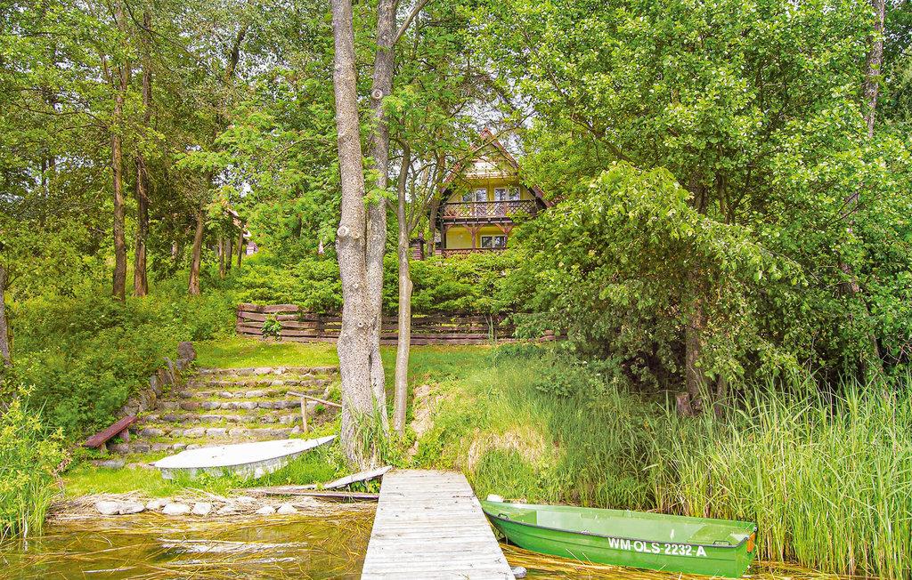 Bo på en bakketop i et feriehus med egen bro ud i søen, blot 20 meter fra huset. En helt speciel beliggenhed. Huset ligger på en stor naturgrund med mange gamle træer som giver behagelig skygge på varme sommerdage. Sid på den overdækkede terrasse og nyd lyden af vinden der får træernes blade til at rasle. I bor i nærheden af både rideskole og golfbane – så husk det rigtige udstyr. Huset er enkelt og praktisk udstyret, men det er naturomgivelserne der og det særlige milde klima der er det ganske særlige. Vi anbefaler en tur til Olsztyn, hvor du kan tage på museum, gå i biografen, teater, planetarium eller besøge en rope Park.