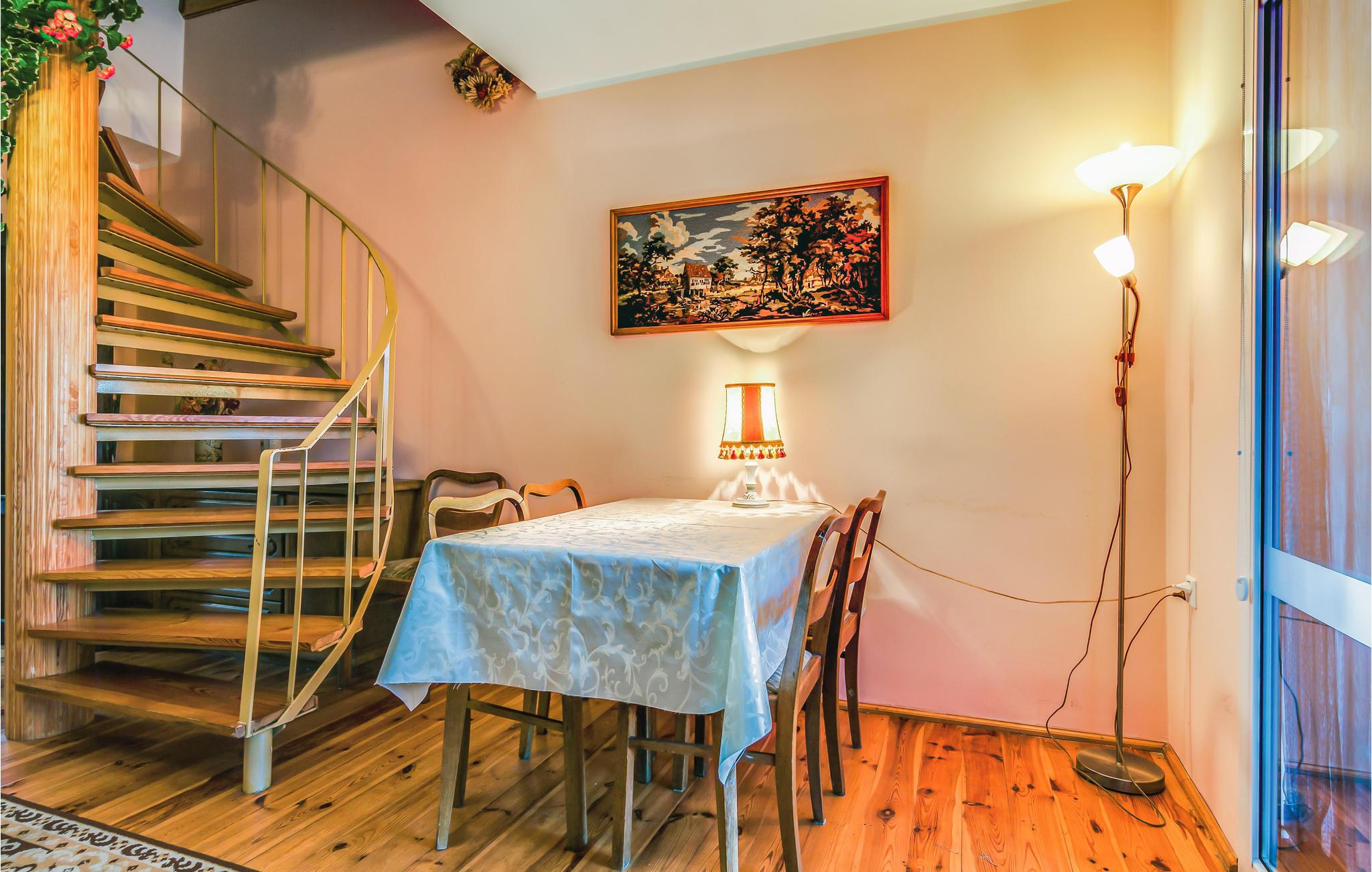Dette renoverede feriehus med dejlig terrasse ligger på en naturgrund med træer, nær både sø og skov. Det store og rummelige hus er hyggeligt indrettet til afslappet familieferie. S1: dobbeltsengen er 140 cm bred. Der er behagelig gulvvarme i et badeværelse. Besøg den spændende havneby Gdansk, rig på kultur og historie og med gode restauranter og cafeer. I dette hus vil I kunne holde en dejlig afvekslende ferie og kan vende tilbage til hverdagen med mange gode minder om spændende oplevelser. Lej cykler på stedet og kør skønne ture ud i landskabet - måske med en madkurv på bagsmækken. Det er også muligt at leje forskellige former for udstyr til vandsport.