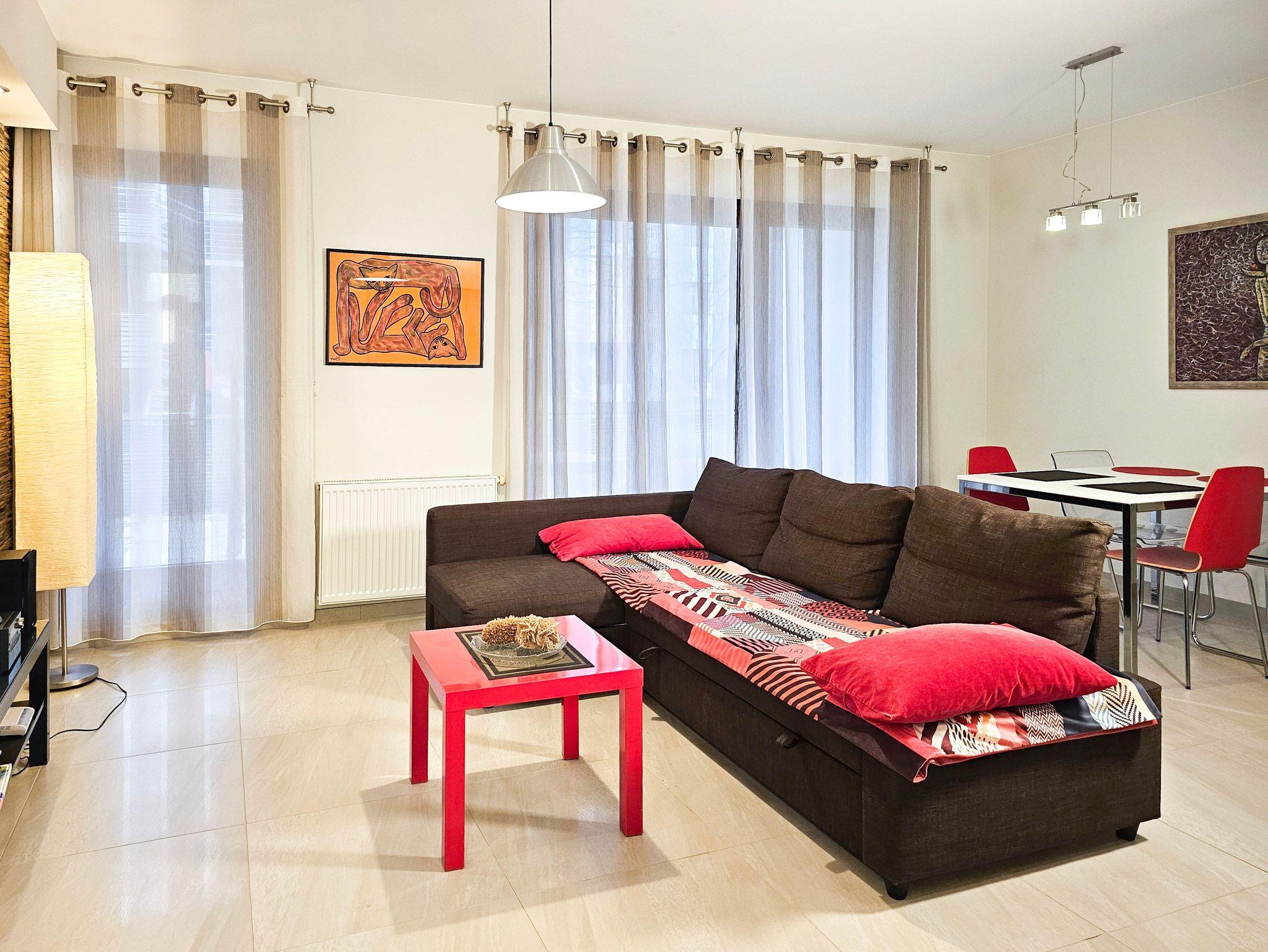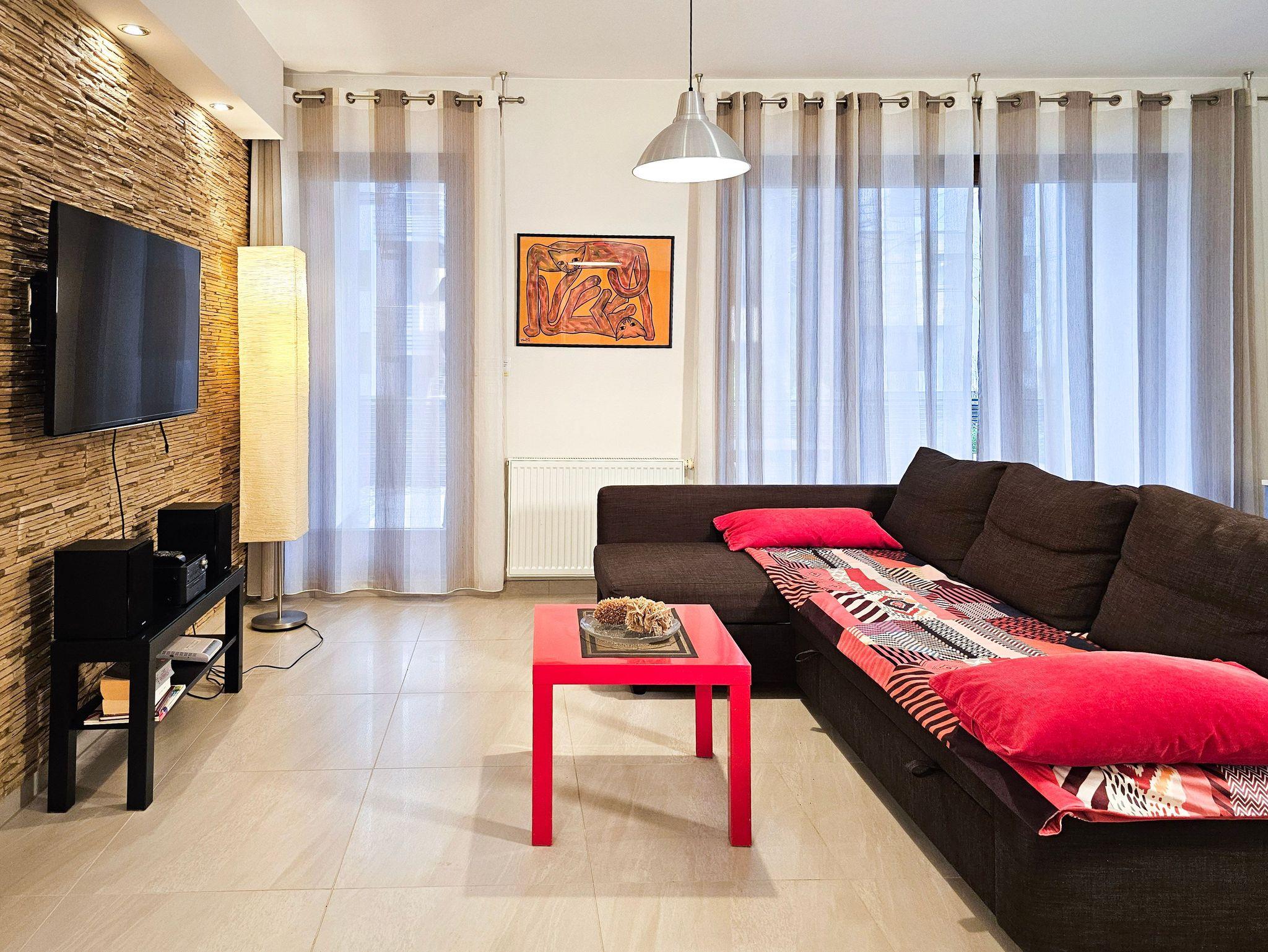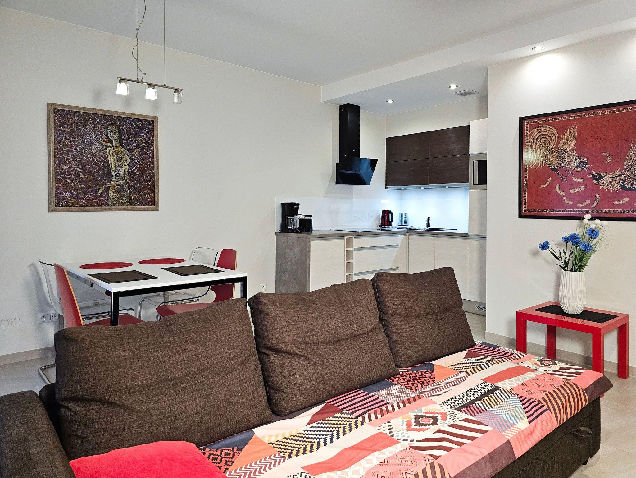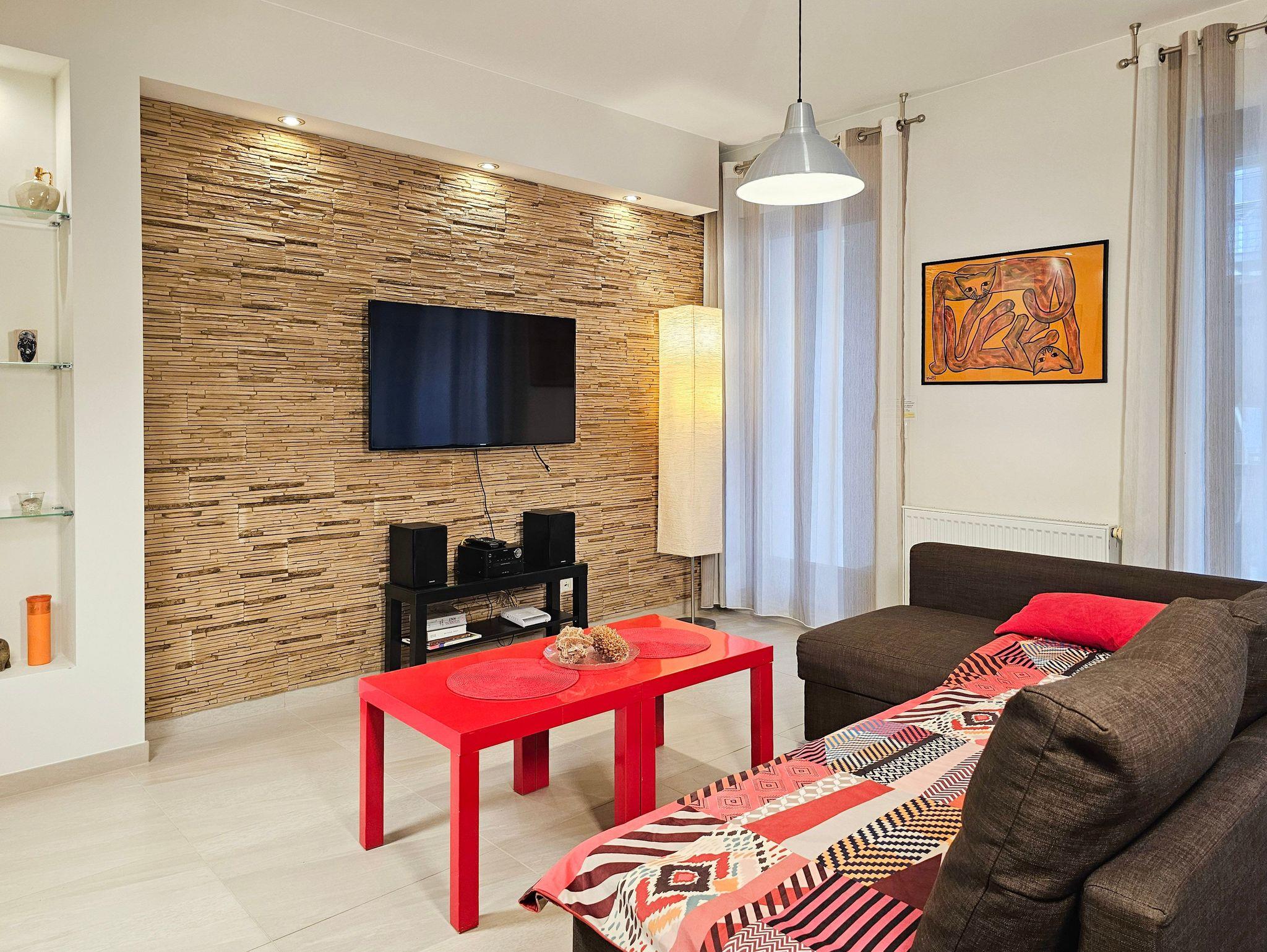Die geräumige (53m2), komfortable, sehr gut ausgestattete 2-Zimmer-Wohnung mit Terrasse befindet sich im Erdgeschoss des 3-stöckigen Gebäudes.