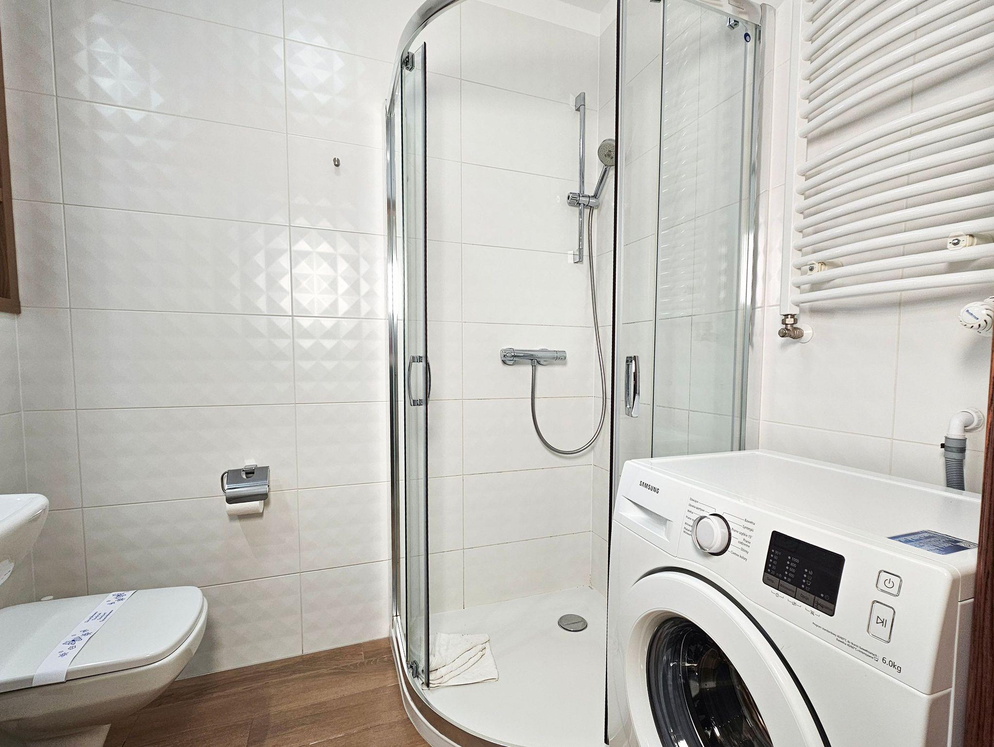 Das Badezimmer ist mit einer Dusche,WC und einer automatischen Waschmaschine ausgestattet.
