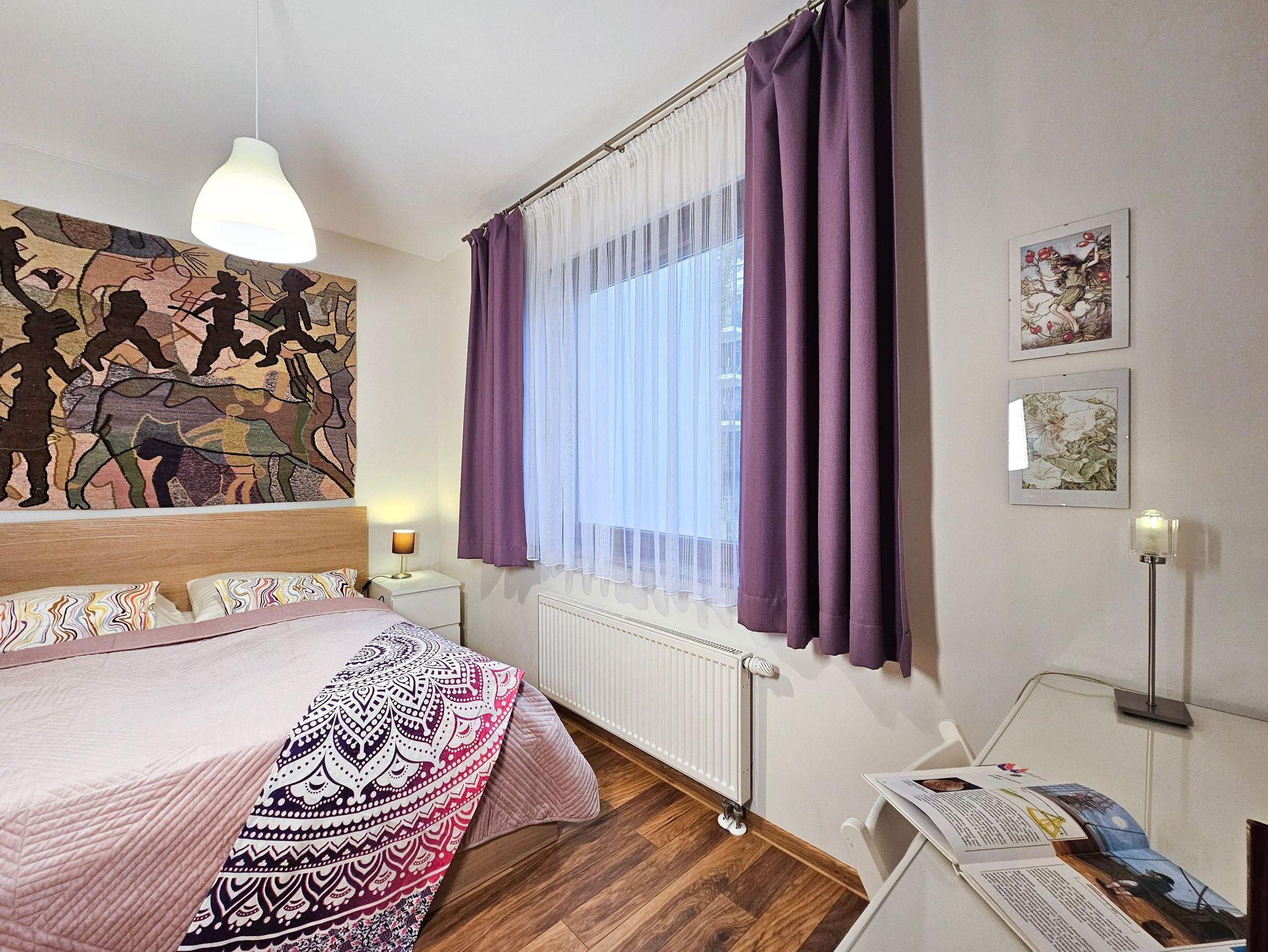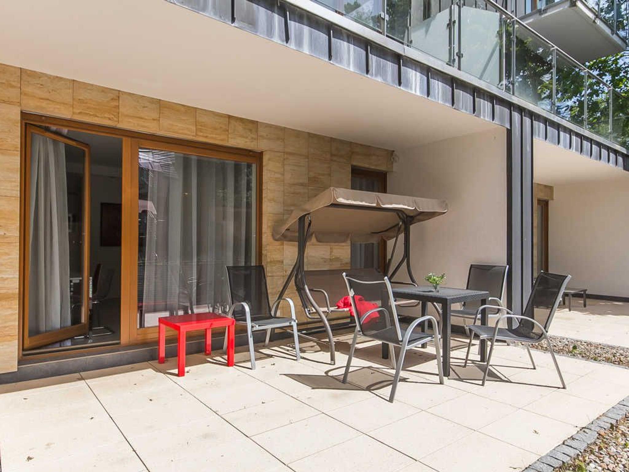 Die Ferienwohnung befindet sich im Wohnkomplex Rezydencja Sienkiewicza, im westlichen Teil des Kurviertels. Die Grüne, ruhige Umgebung, direkte Nähe zum Wald, eine kurze Entfernung zur Promenade und zum Strand (ca. 300 m) sind die Vorteile der Lage. In der Nähe gibt es ebenfalls einen kleinen Spielplatz für Kinder, Waldwanderwege, die Gesundheitspromenade, die Gradierwerke, einen Radweg entlang der 15km langen grenzüberschreitenden Promenade, die Swinemünde mit den Kaiserbädern auf der deutschen Seite der Insel Usedom (Ahlbeck, Heringsdorf, Bansin) verbindet. Ein ausgezeichneter Ort für Gäste, die Ruhe und Nähe zur Natur suchen.