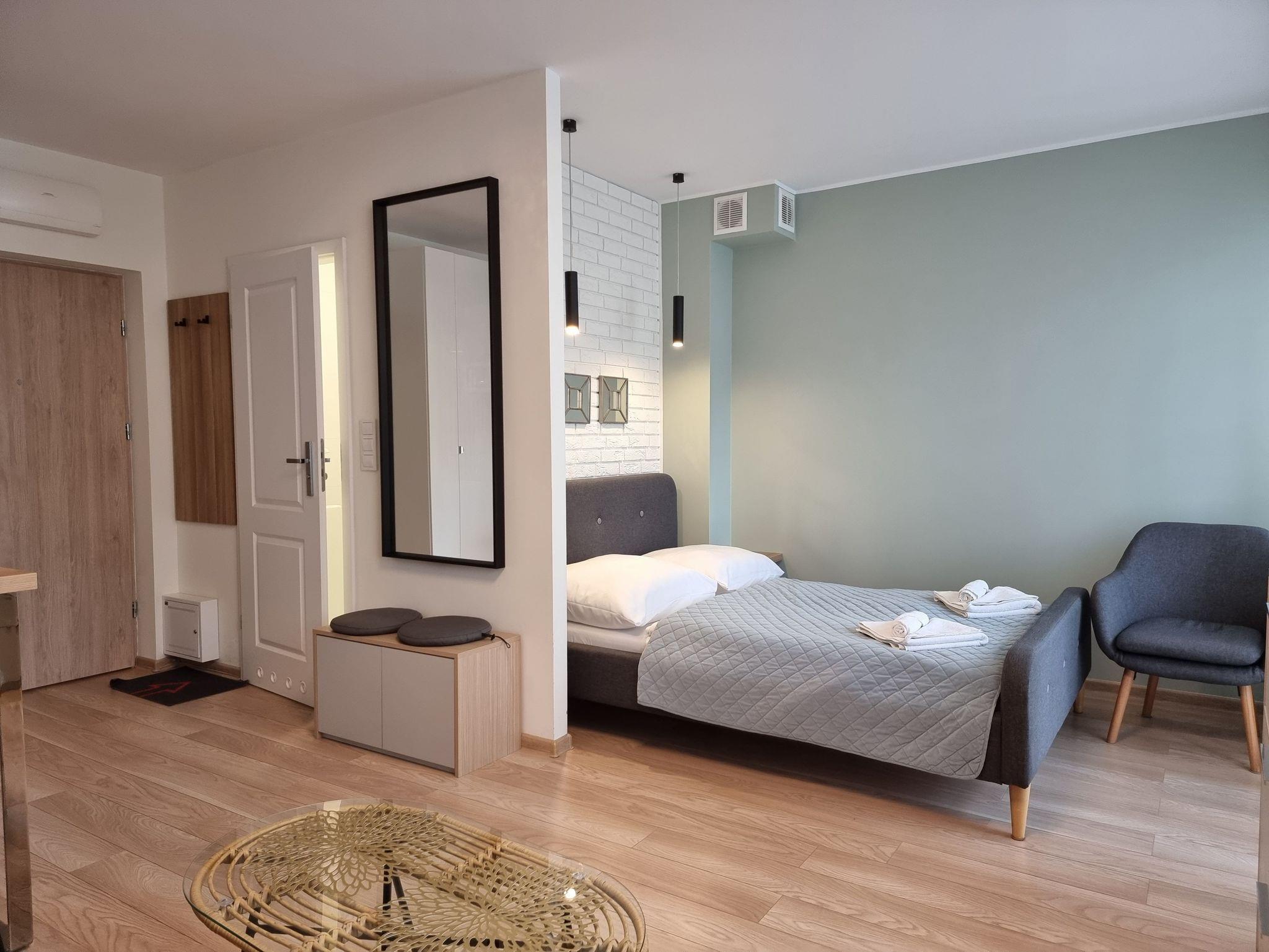 Die Ferienwohnung mit Balkon befindet sich auf der 2. Etage eines neugebauten Hauses (Baujahr 2016). Das Gebäude (Überwachung) befindet sich im Wohnviertel Windrose, am Eingang zum Kurpark. Von hieraus ist es nicht weit zur Fähranlegestelle „Bielik“, zum Stadtzentrum, Apotheke und ins Krankenhaus. Zum Strand führt ein Spazierweg durch den Kurpark. Von der I. Etage erreichen wir einen grünen Innenhof.