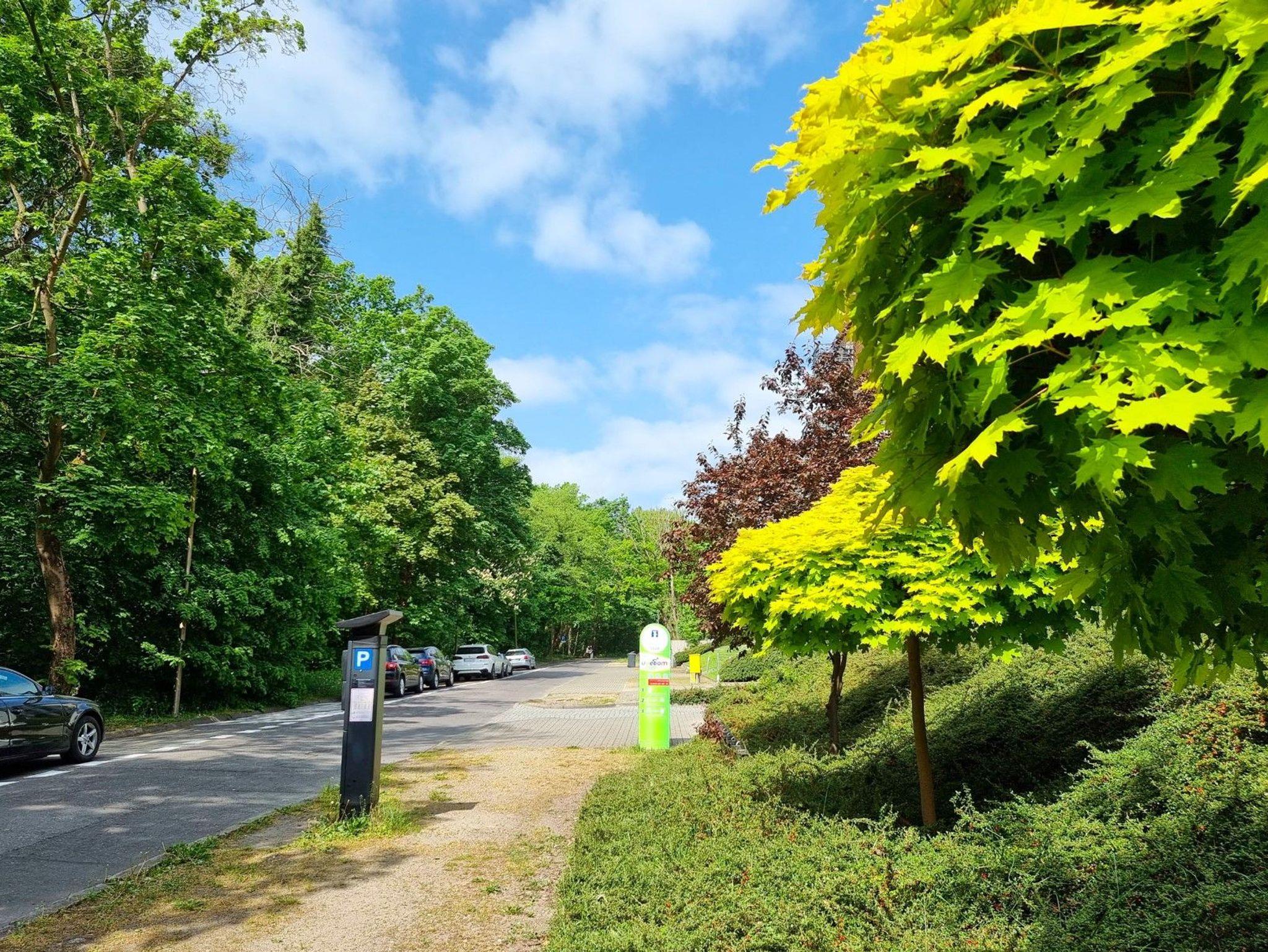 Das Parken ist auf öffentlichen Parkplätzen an der Straße möglich gebührenpflichtig (ganzjährig kostenpflichtige Parkzone).