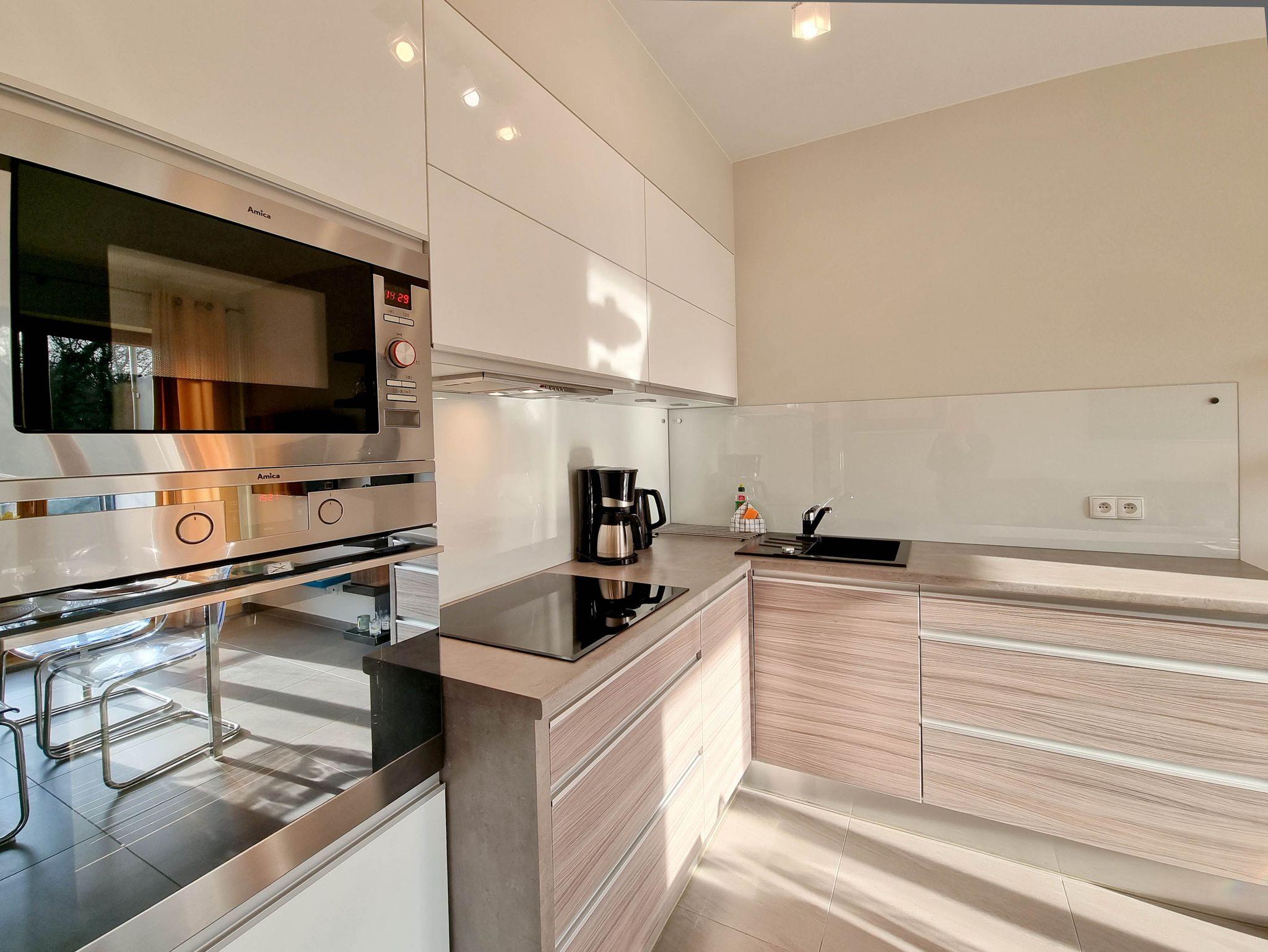 Die Küchenausstattung umfasst notwendige Küchenutensilien, Wasserkocher, Backofen, Geschirrspüler, Toaster, Mikrowelle und eine Dunstabzugshaube.