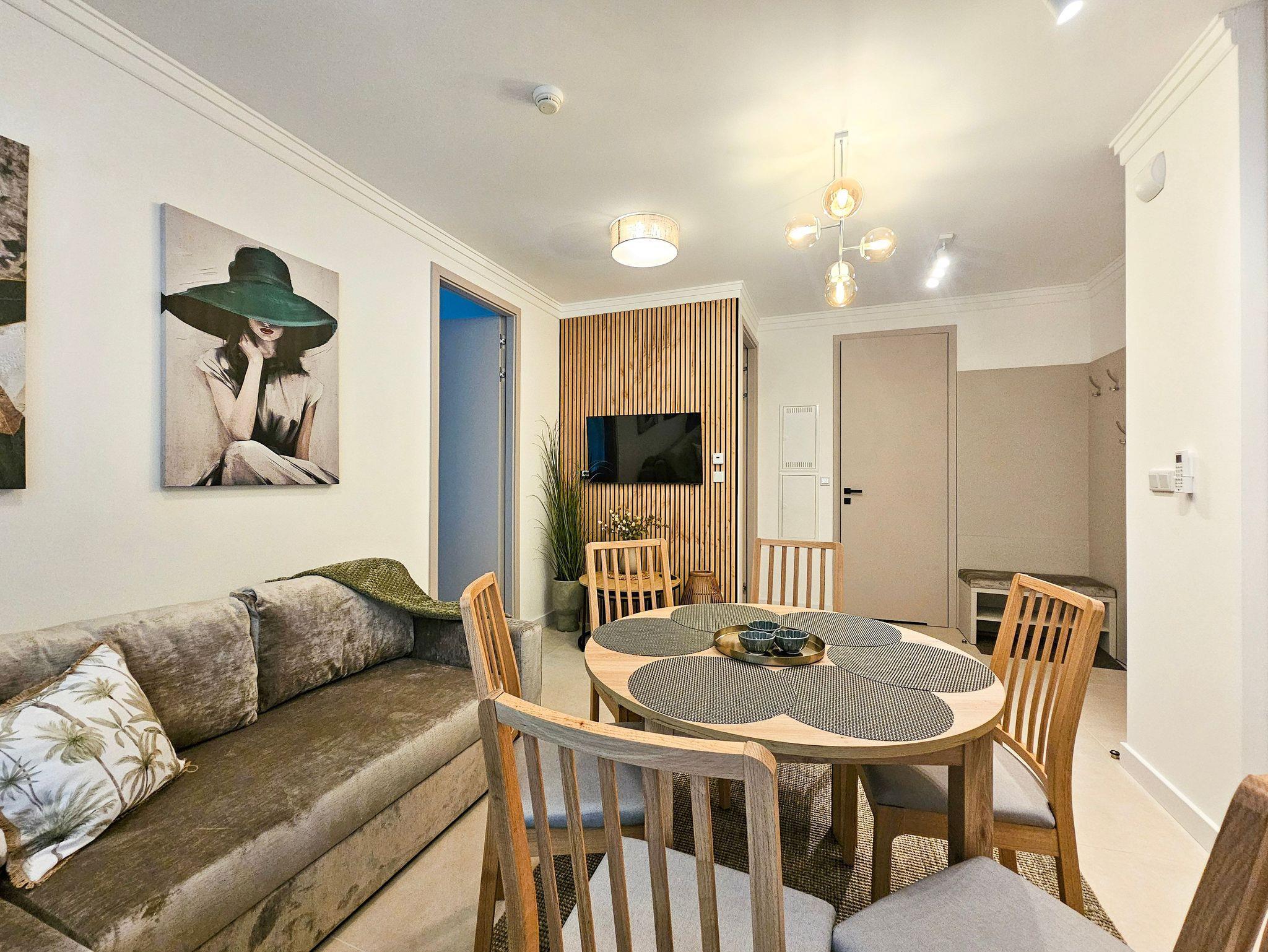 Komfortables Apartment mit 2 Schlafzimmern, einem Wohnzimmer und einer Terrasse im Greeneri Park-Komplex in winoujcie. Ideal für einen längeren Urlaub oder einen kurzen Ausflug ans Meer. Zur Wohnung gehört ein Stellplatz in der Tiefgarage.