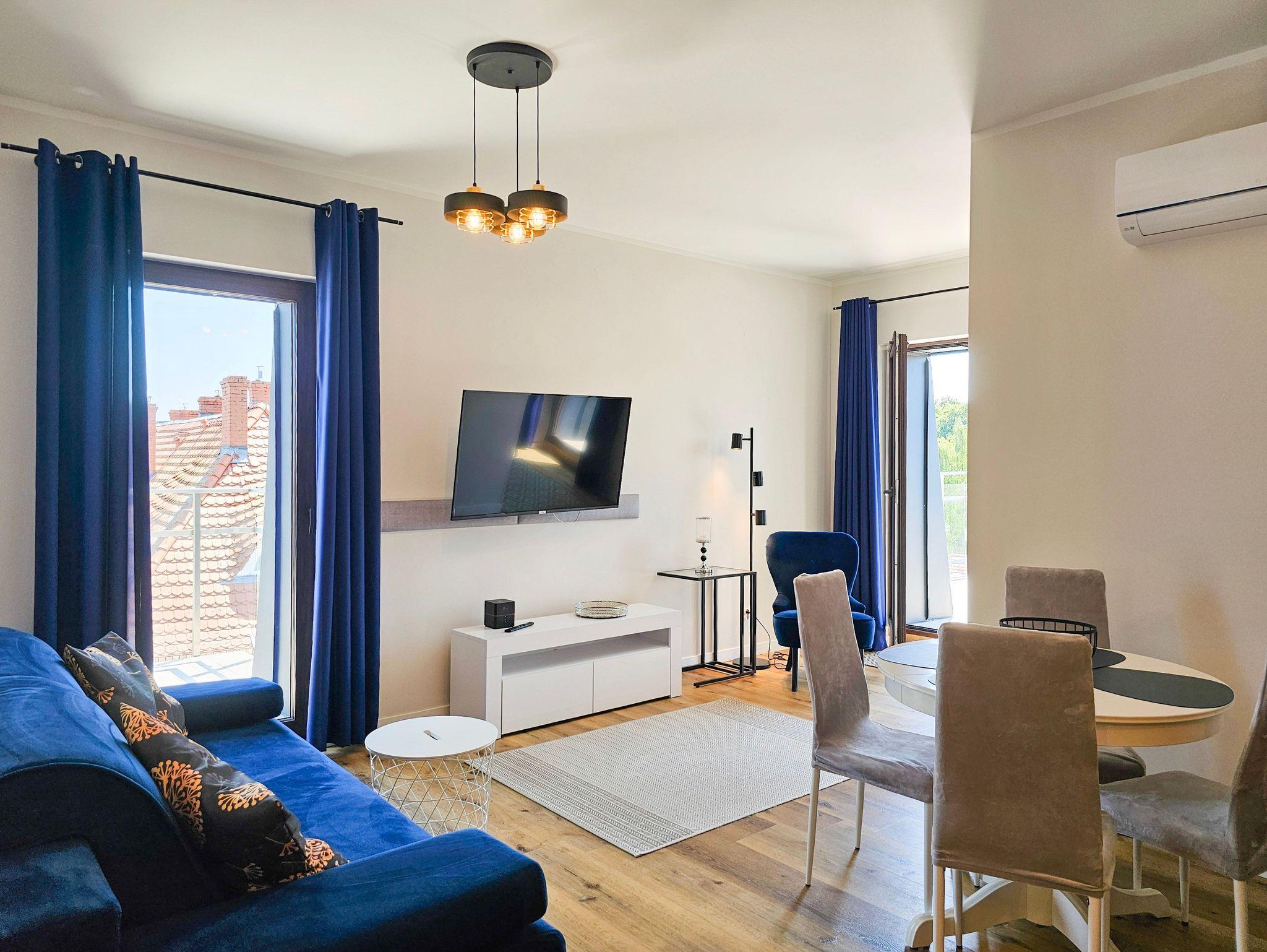Geräumiges und komfortables Apartment mit Wohnzimmer, Schlafzimmer und großer Terrasse.
