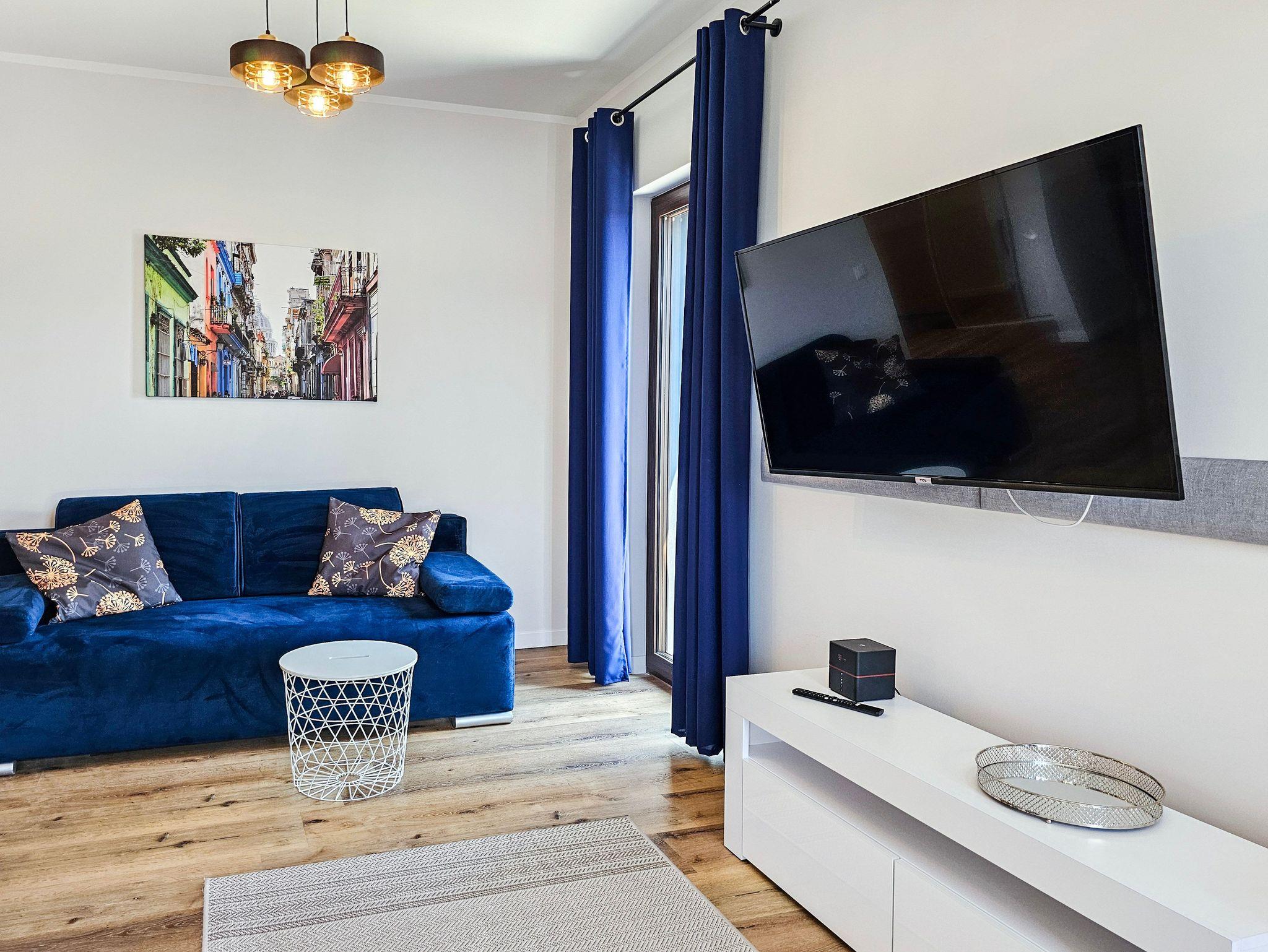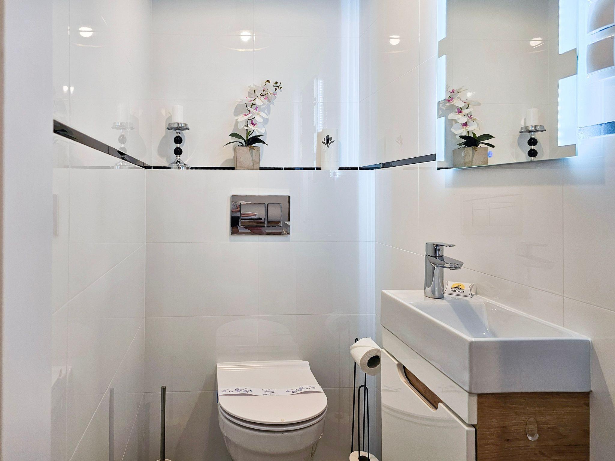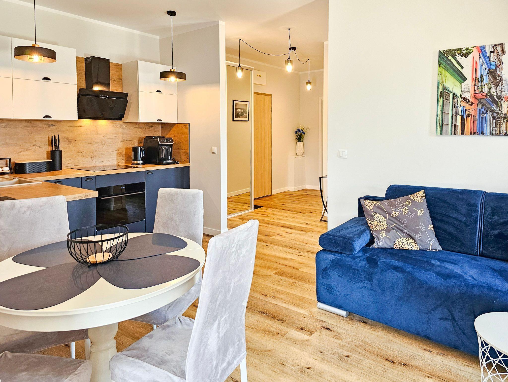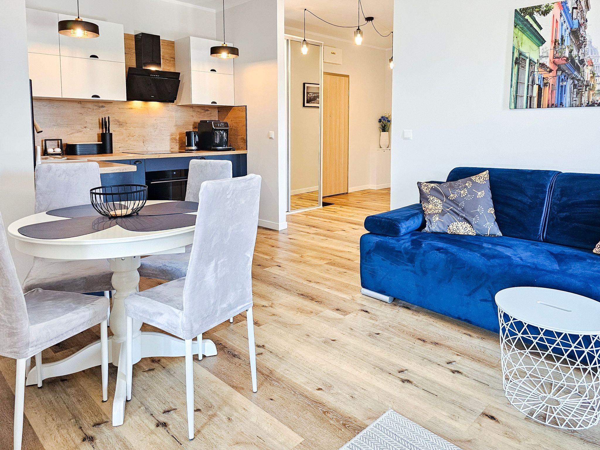 Modern eingerichtetes, komfortables und gut ausgestattetes Apartment im 4. Stock des modernen Apartmenthauses Kormoran, gelegen im Kurviertel von winoujcie. Ein Aufzug ist vorhanden. Vor dem Gebäude befinden sich ein Springbrunnen, Ruhebänke sowie eine Promenade mit Restaurants, Cafés und Dienstleistungspunkten. Die Sowackiego-Straße, an der das Apartment liegt, ist für den Autoverkehr eingeschränkt.