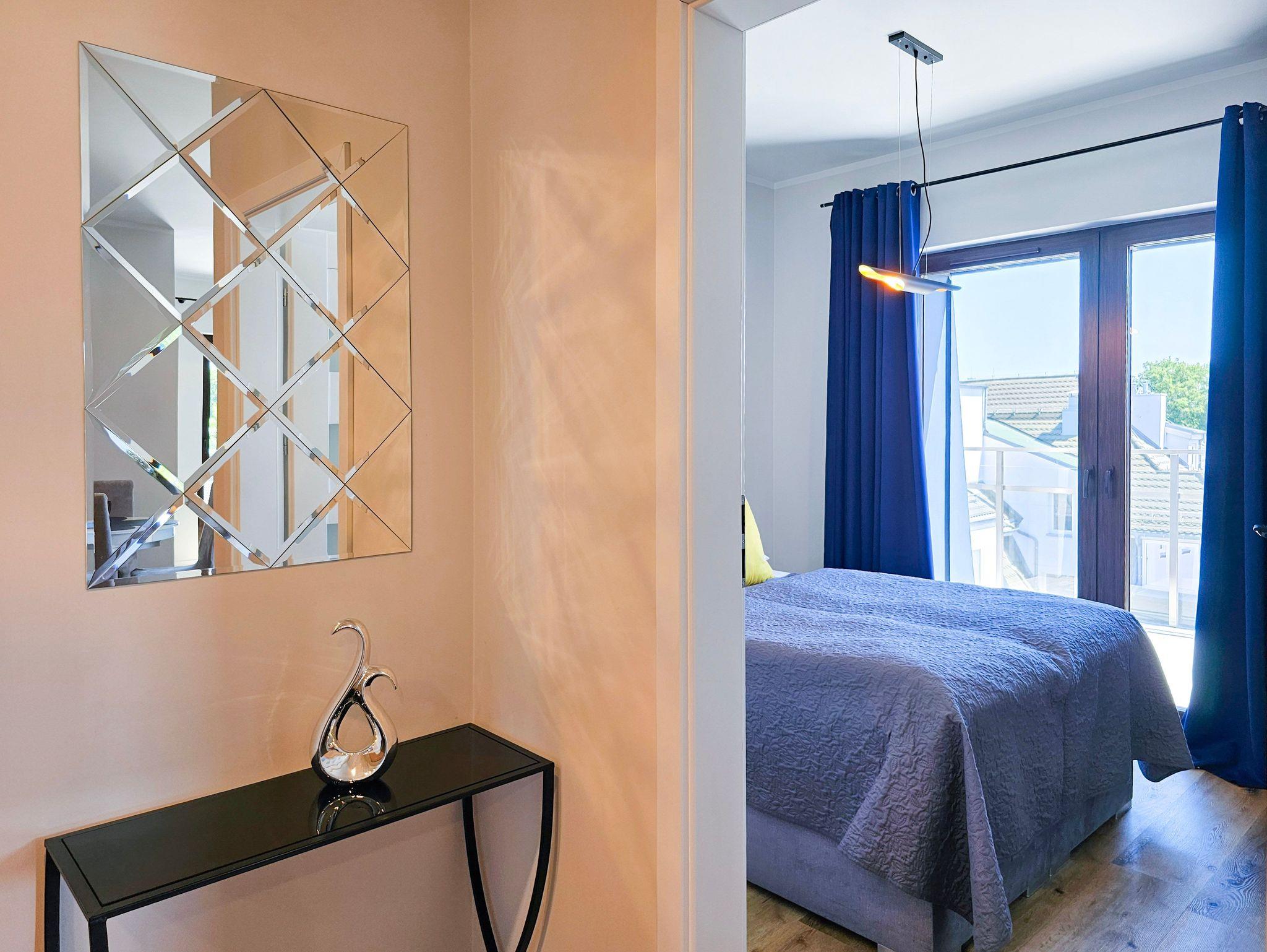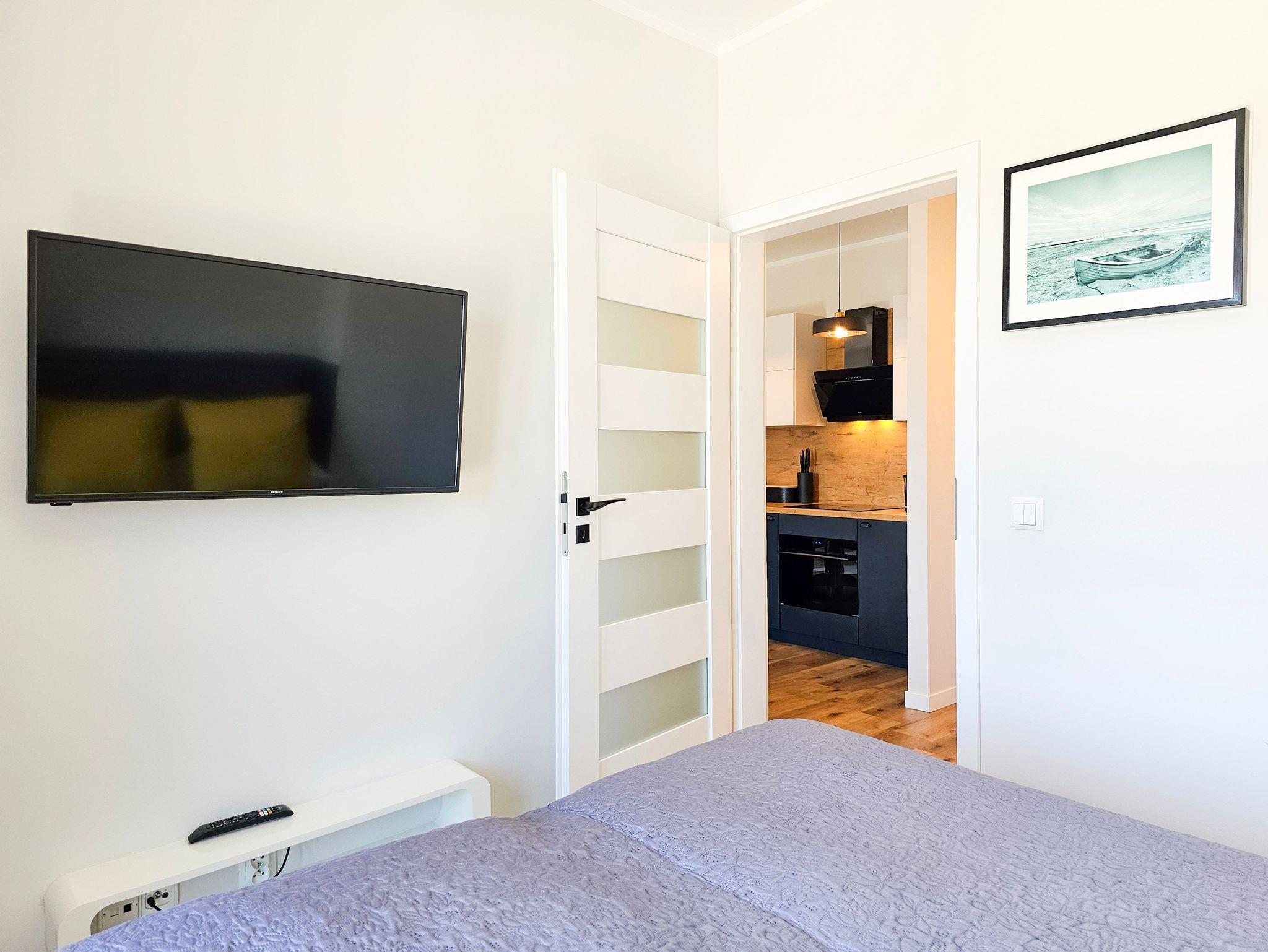 Modern eingerichtetes, komfortables und gut ausgestattetes Apartment im 4. Stock des modernen Apartmenthauses „Kormoran“, gelegen im Kurviertel von winoujcie. Ein Aufzug ist vorhanden. Vor dem Gebäude befinden sich ein Springbrunnen, Ruhebänke sowie eine Promenade mit Restaurants, Cafés und Dienstleistungspunkten. Die Sowackiego-Straße, an der das Apartment liegt, ist für den Autoverkehr eingeschränkt.