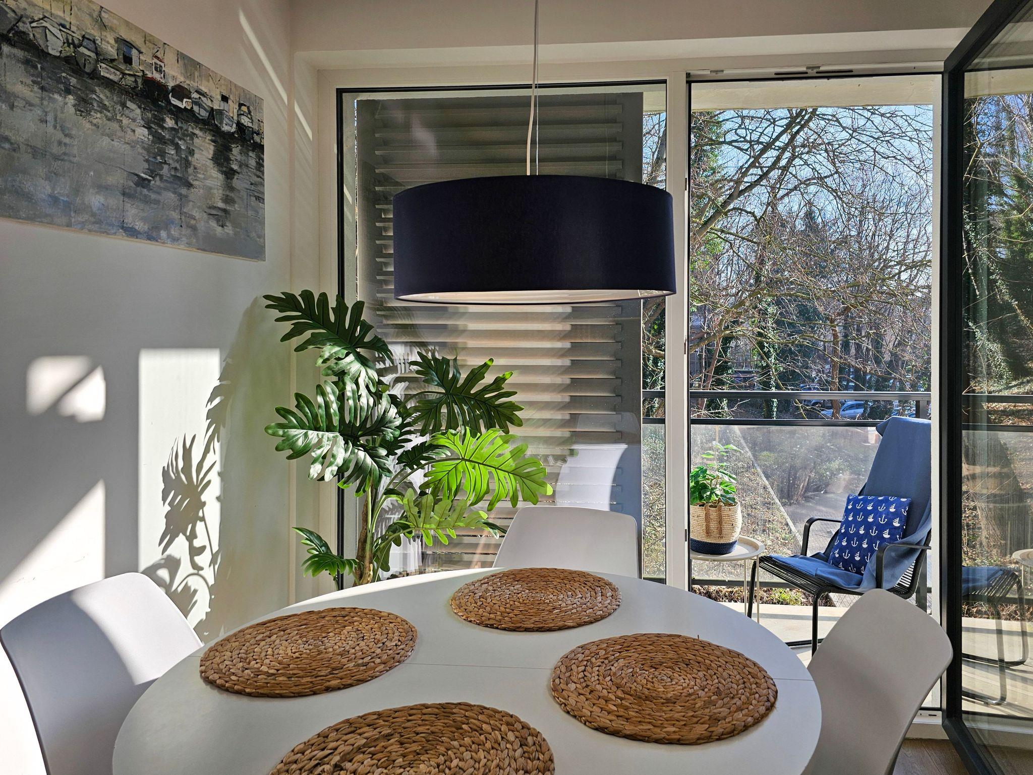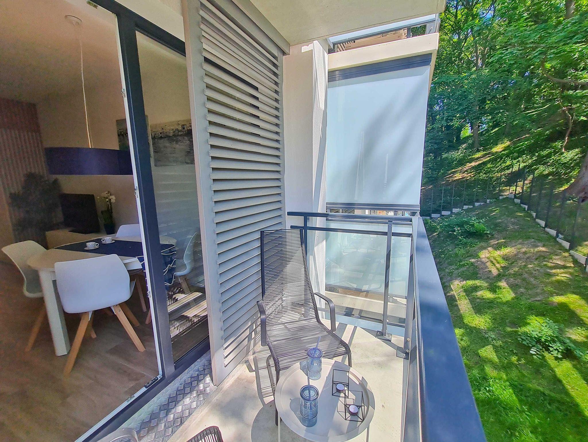 Die Wohnung verfügt über 2 Balkone, einer davon ist mit Schaukelstühlen und einem Tisch zur Westseite mit Blick auf den Park ausgestattet.