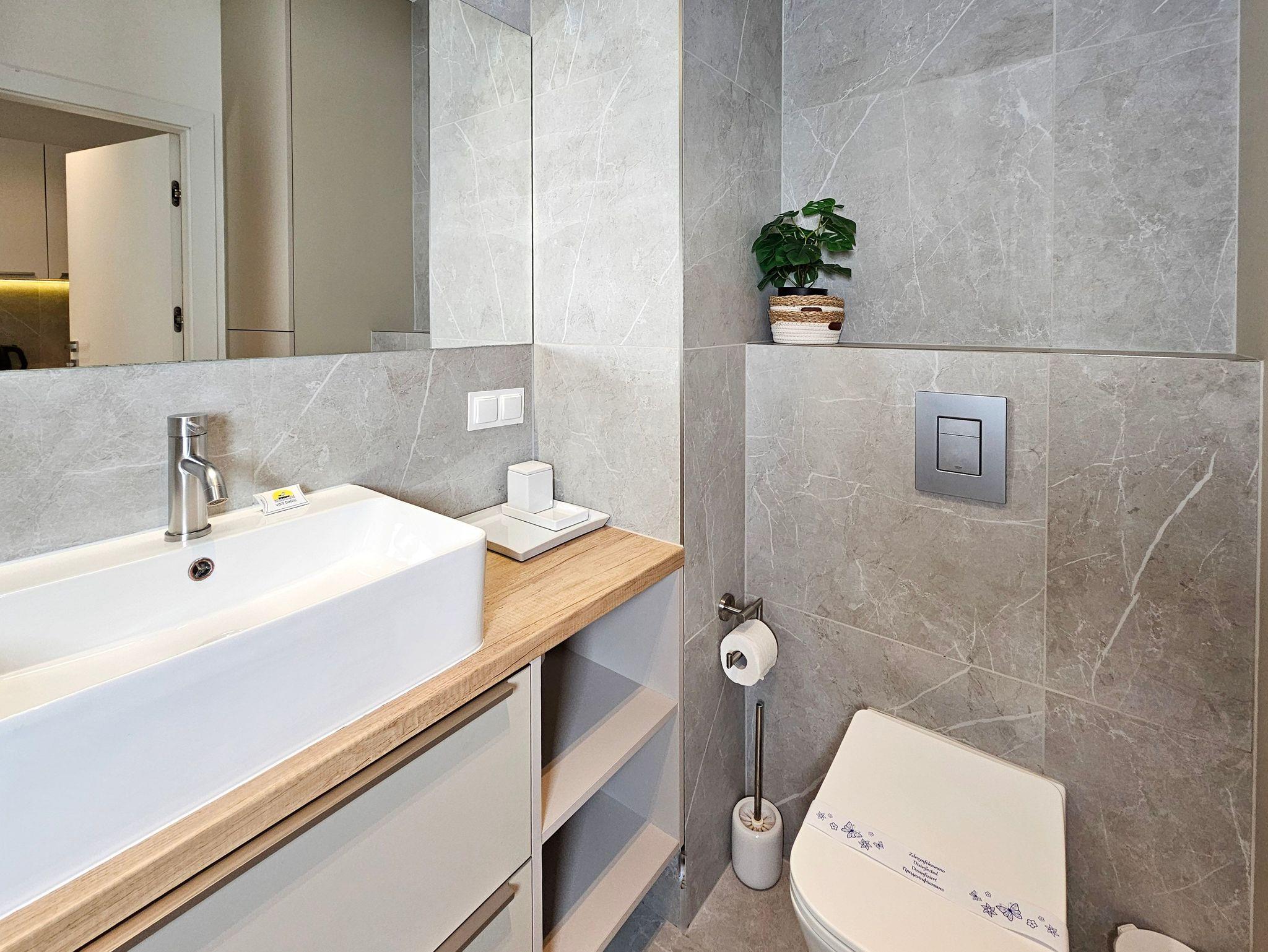 Eine 2-Zimmer-Wohnung mit einer Fläche von 47m2 in einem Neubau in unmittelbarer Nähe des Chopin-Parks.
