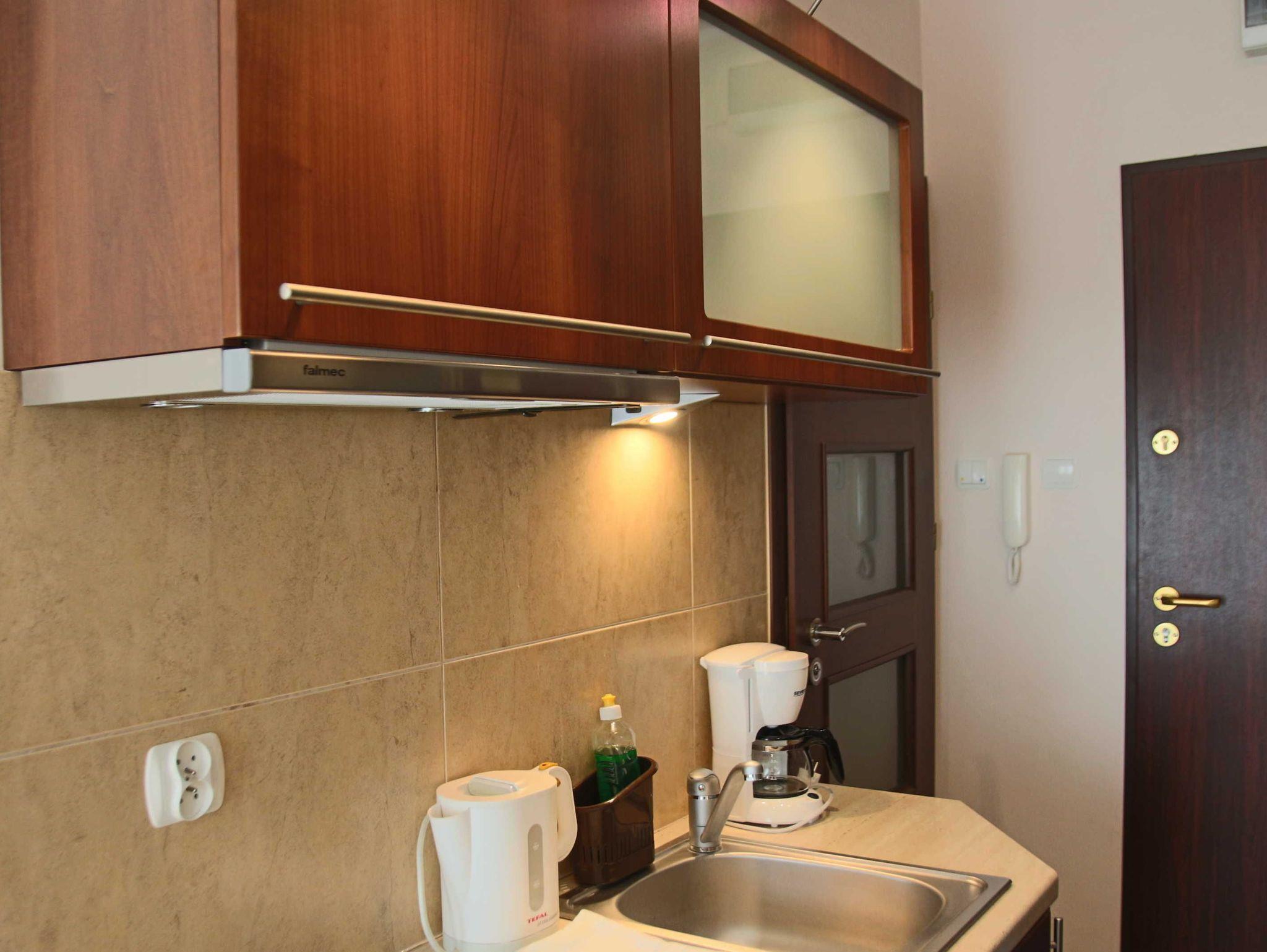 Die Küchenzeile verfügt über ein Zwei-Platten-Elektroherd, Wasserkocher.