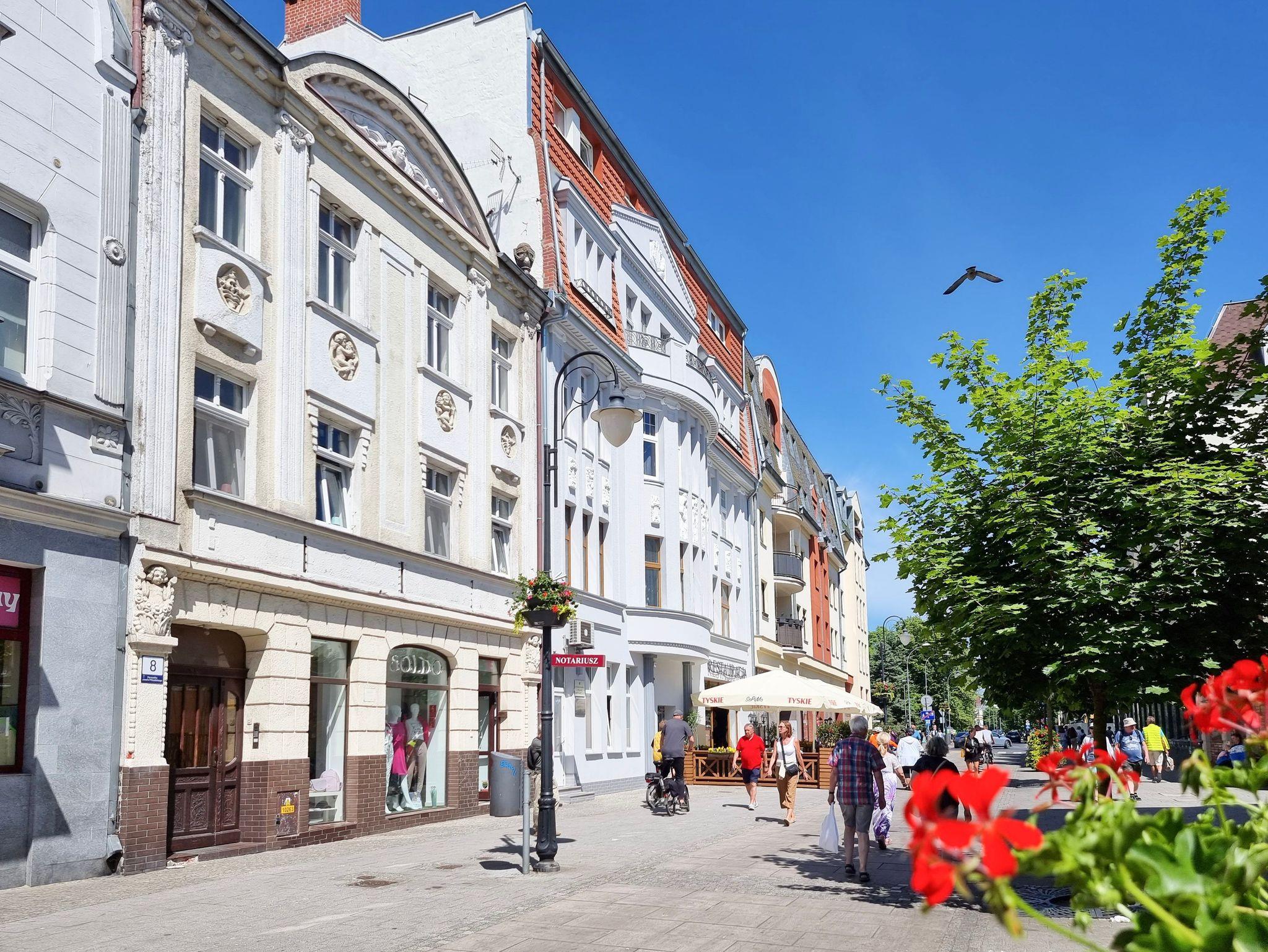 Eine Ferienwohnung mit einer Fläche von 90,50m2 im zweiten Stock (kein Aufzug) in einem historischen Gebäude in der Fußgängerzone der Pilsudskiego Straße in Swinemünde.