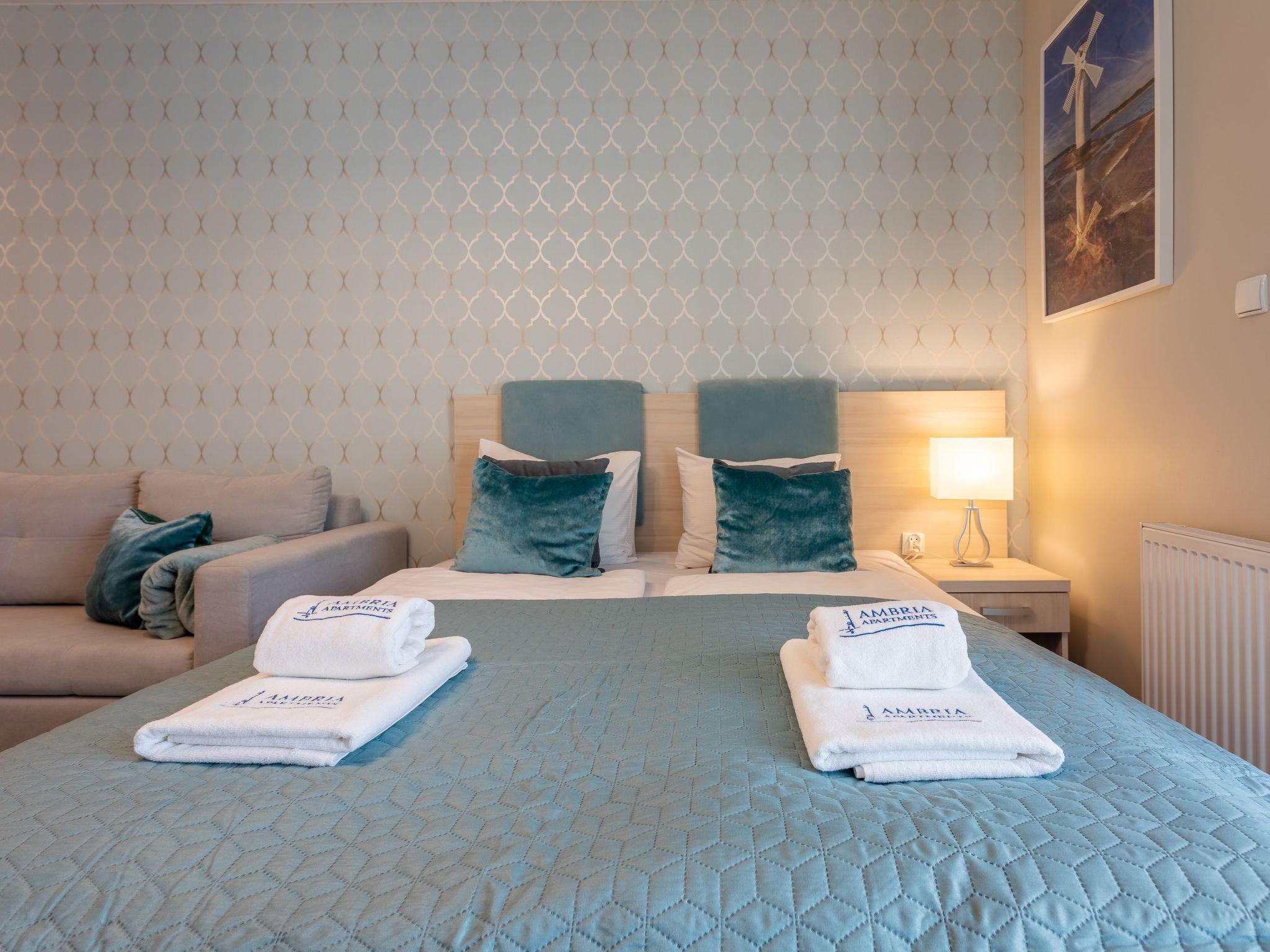 The flat "Pegaz 17" is a studio consisting of a living, dining and sleeping area, a fully equipped kitchenette and a very spacious bathroom - with a total area of 25 m2, but extremely functional thanks to its ergonomic layout. The interior is very aesthetically pleasing and decorated to a high standard, which is reflected in beautiful furniture and accessories that catch the eye and are characterised by their texture and original finish. The optimal design and layout of the space ensures rest and relaxation after everyday challenges and provides peace and quiet in intimate privacy. An additional advantage is the spacious balcony, which is a very practical extension of the flat and allows you to enjoy the beautiful weather and the company of your loved ones in the greenery at any time of the day. There is also a free parking space available to guests, which significantly increases travel comfort and is likely to be particularly popular with families on holiday with children.
