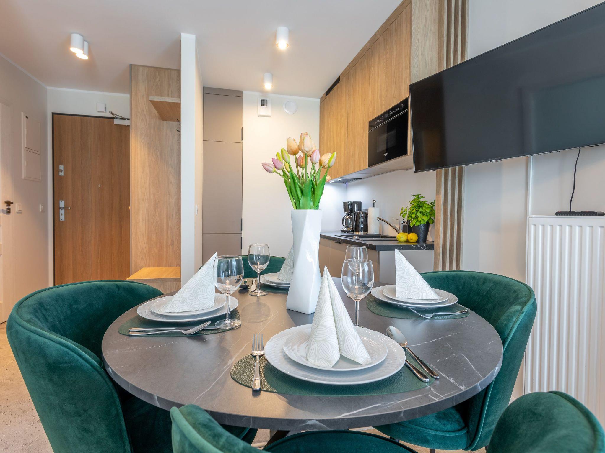 Flat "Sun Towers A73" in Swinoujscie is an elegant flat in a building from 2022. The location of the flat is also unique: it is located in the immediate vicinity of the promenade (approx. 500 m) and next to a park with a well-equipped playground for children. There are also famous shops, bars, cafés and restaurants nearby, where you can drink aromatic coffee or taste local specialities and buy beautiful amber souvenirs.