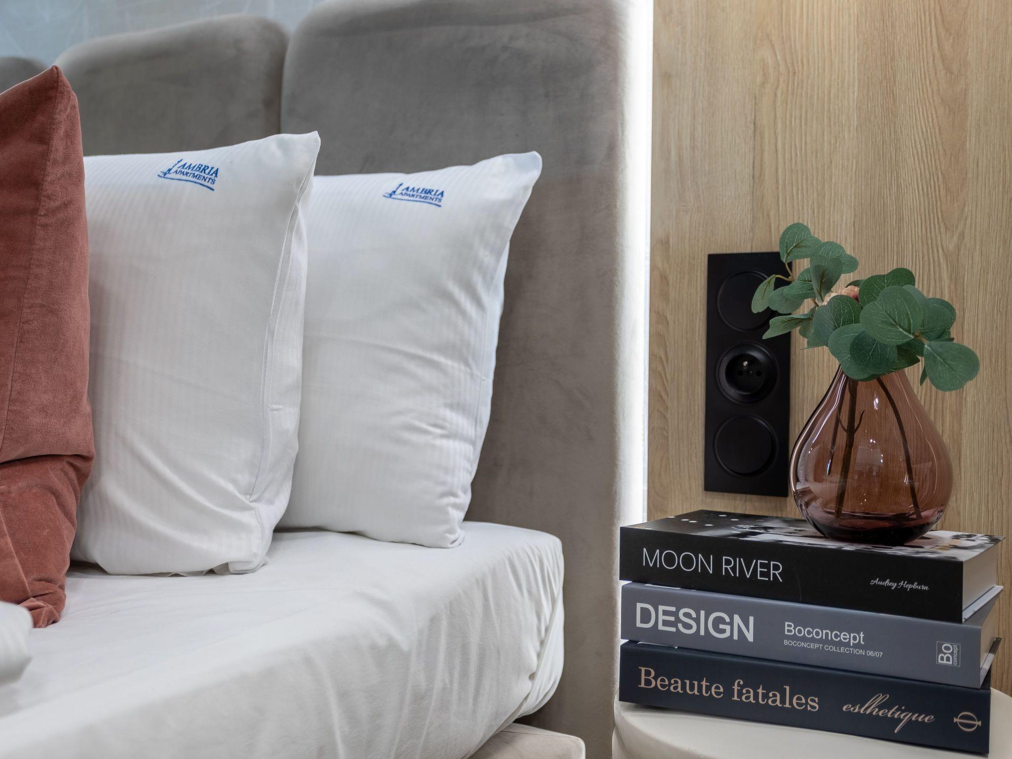 In this beautiful holiday flat with its maritime decor, you will immediately feel like you are in the Hamptons! The atmosphere of the flat will make you feel like you're on a beach in the summer sun: White and beige colours dominate. Order and harmony reign here, and at the same time you can feel the atmosphere of the sea, which attracts with its mystery, seduces with its uniqueness and promises extraordinary moments far away from everyday life. You must give in to this temptation - it is an invitation to a wonderful holiday adventure and extraordinary experiences. It is a cosy place for people who want to feel at home in addition to the attractions by the sea: Spend some time on the sofa watching TV, listening to a good audio book or reading your favourite book. Attention is also drawn to expressive and very modern accessories as well as interesting shapes and textures - all with delicate and original marine motifs. You must board this deck without a doubt !