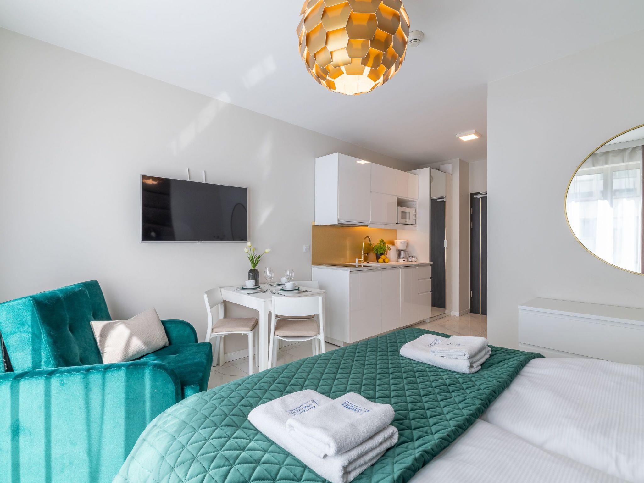 This charming holiday flat in Swinoujscie on the Baltic coast of Poland can accommodate up to 3 people and is an excellent choice for small families, couples or friends. The studio layout of the flat means that the living and sleeping areas flow harmoniously into one open-plan space, creating a cosy and welcoming atmosphere. A bathroom with shower ensures comfort and convenience during your stay.