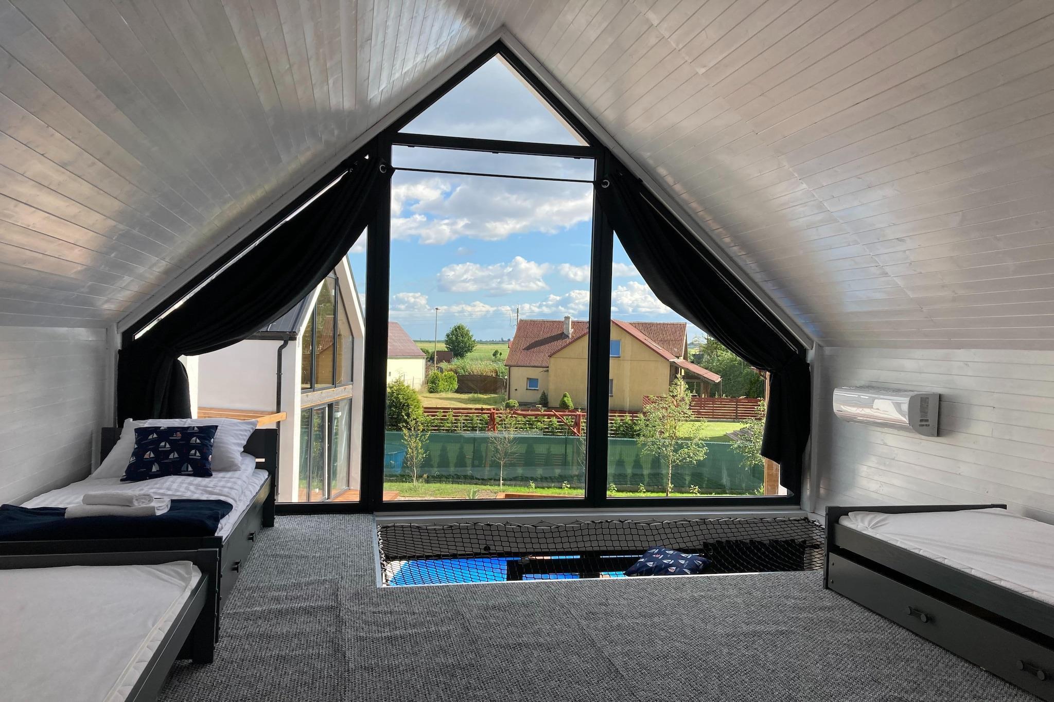 Intime, komfortable feriehuse med swimmingpool i Swinoujscie. Til gæsternes rådighed en udendørs swimmingpool, legeplads, volleyballbane, grill, liggestole, pejs, have, parkeringsplads. Hvert hus har gratis WiFi og aircondition. Husene er beliggende i stødpudezonen i Wolinski National Park, glæder sig over fred og nærhed til naturen. Tilbuddet henvender sig især til familier med børn, for hvem der venter mange attraktioner på feriestedet. Hurtig adgang til Miedzyzdroje omkring 10 minutter. Det er muligt at arrangere et krydstogt i solnedgang på Bayerske yacht på Pommern-bugten (mod betaling).