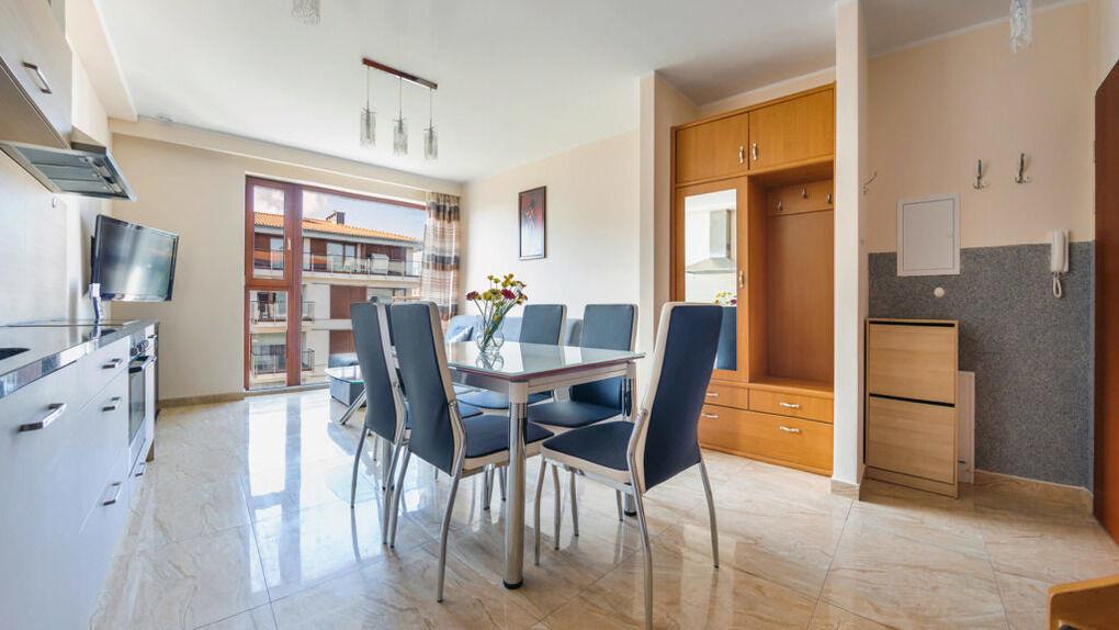 Wir bieten Ihnen Apartments gleich an einem breiten Sandstrand an. Im Teil der Apartments gibt es eine schöne Aussicht aufs Meer.