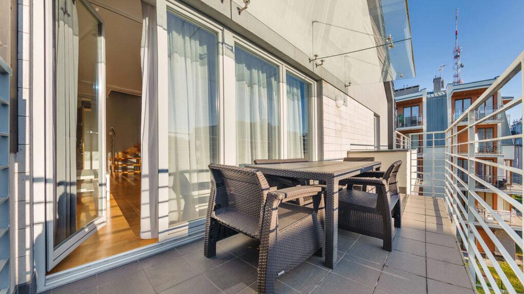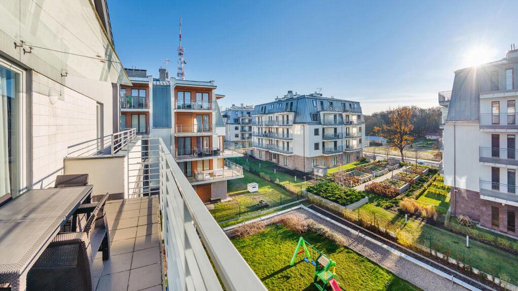 Wir laden Sie in moderne Apartments in der Nähe der Spazierpromenade ein. Die Anlage liegt in der Nähe des Kurparks und des Strandes.