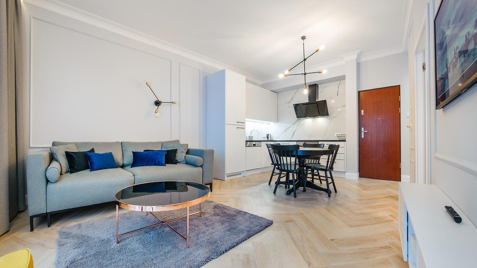 • Haustiere sind in der ausgewählten Wohnung erlaubt. Die Kosten für den Aufenthalt mit einem Haustier betragen 40 PLN pro Tag.