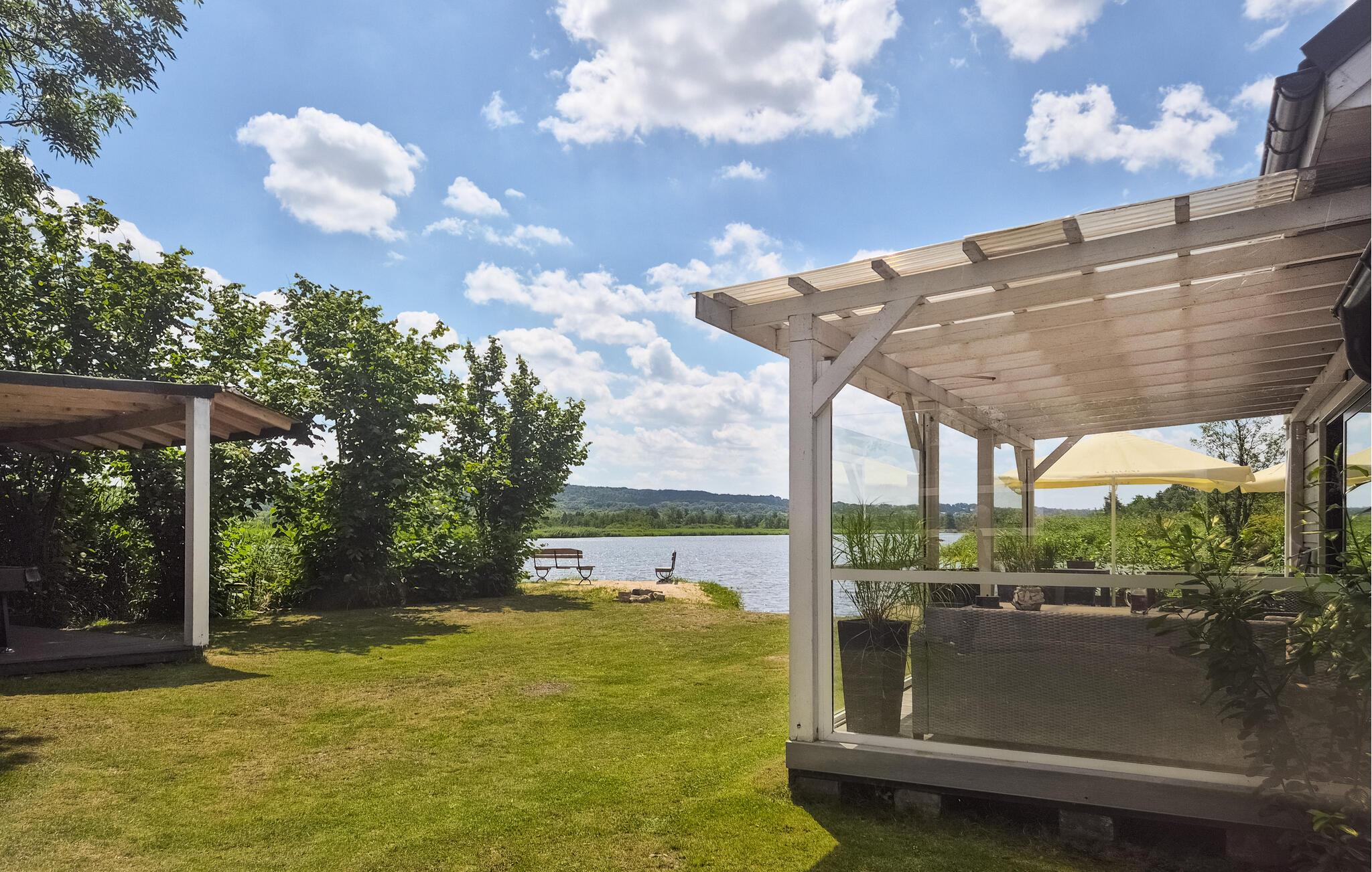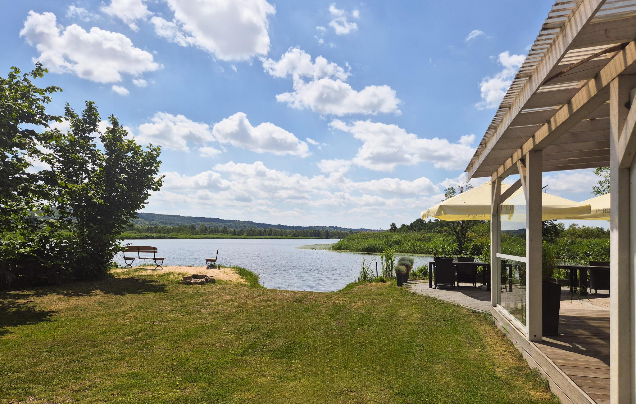 Den store have byder også på mange muligheder for at tilbringe fritiden i udenfor. I kan solbade eller boltre jer med jeres hunde. Gå ikke glip af muligheden for at fiske direkte ved huset og måske være heldige at kunne servere friskfanget fisk til aftensmaden. Det er også muligt at bruge den båd, der hører til huset, og udforske søen på egen hånd.