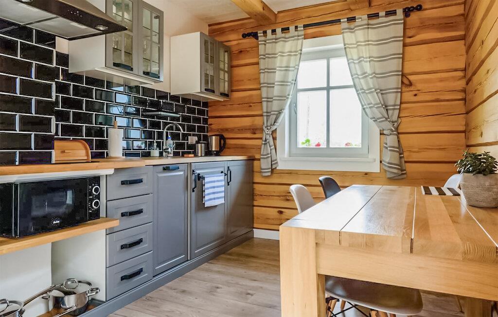 Tag familien under armen og rejs til Szelagówka, hvor der i dejlige omgivelser venter en magisk ferie i denne lækre lejlighed. Boligen præges af gennemtænkte indretningsløsninger, rustikke trævægge, moderne faciliteter og en brændeovn, der giver varme og stemning på de lidt køligere dage. Kræs om livretterne i det moderne køkken og nyd dem ved spisebordet med et godt glas vin efter en aktiv feriedag.
