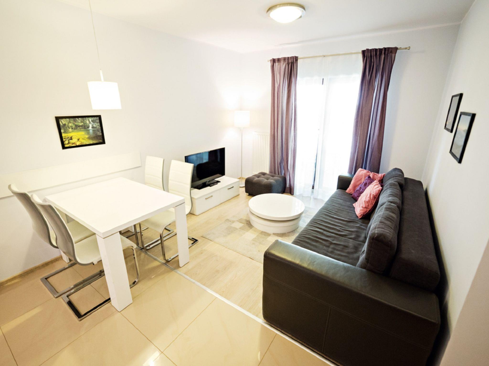 "Sun & Snow 4 people", 2-room apartment 36 to 66 m2. Living/sleeping room with 1 sofabed and flat screen. Exit to the balcony. 1 room with 1 double bed. Open kitchen (dishwasher, 1 induction hot plates, kettle) with dining nook. Shower/WC. Heating, gas heating. Facilities: iron. Please note: smoke alarm.