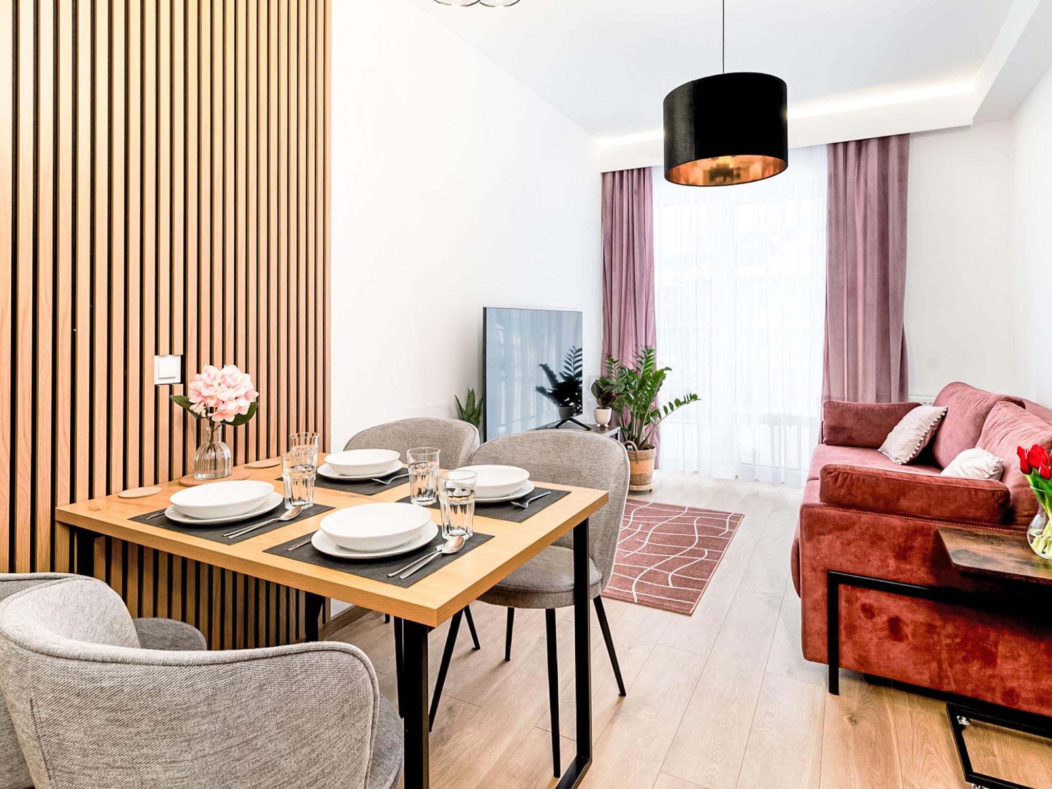 Modern, cosy apartment block "Ostoja Parku Narodowego". In the resort, in a quiet, elevated position. In the house: WiFi, sauna, relaxation room, playroom, central heating system, burglar alarm system. Grocery, restaurant 800 m, bus stop 1.3 km. Ski lift 1.5 km. Nearby attractions: Wodospad Szklarski 2.5 km, Wodospad Kamienczyk 6.5 km, Sniezne Kotly 7 km. Please note: the photograph shows a typical example. Additional accommodations can be booked. The apartment may be on the ground floor, first floor or second floor. Infant accepted over the maximum number of people - up to 3 years of age.