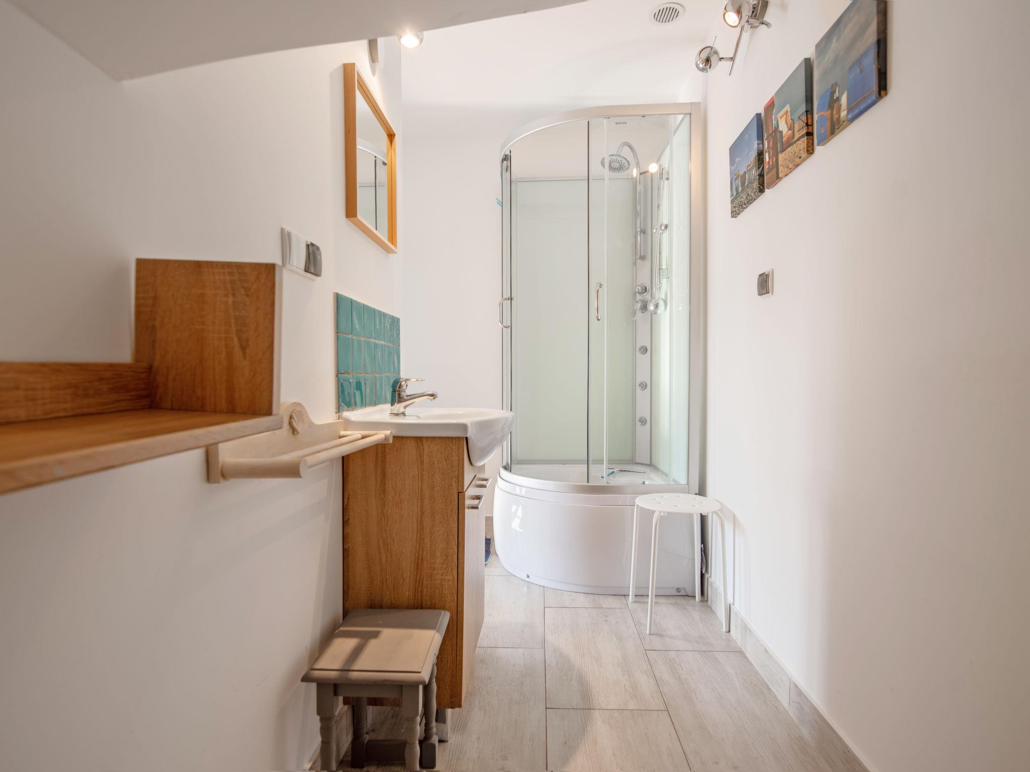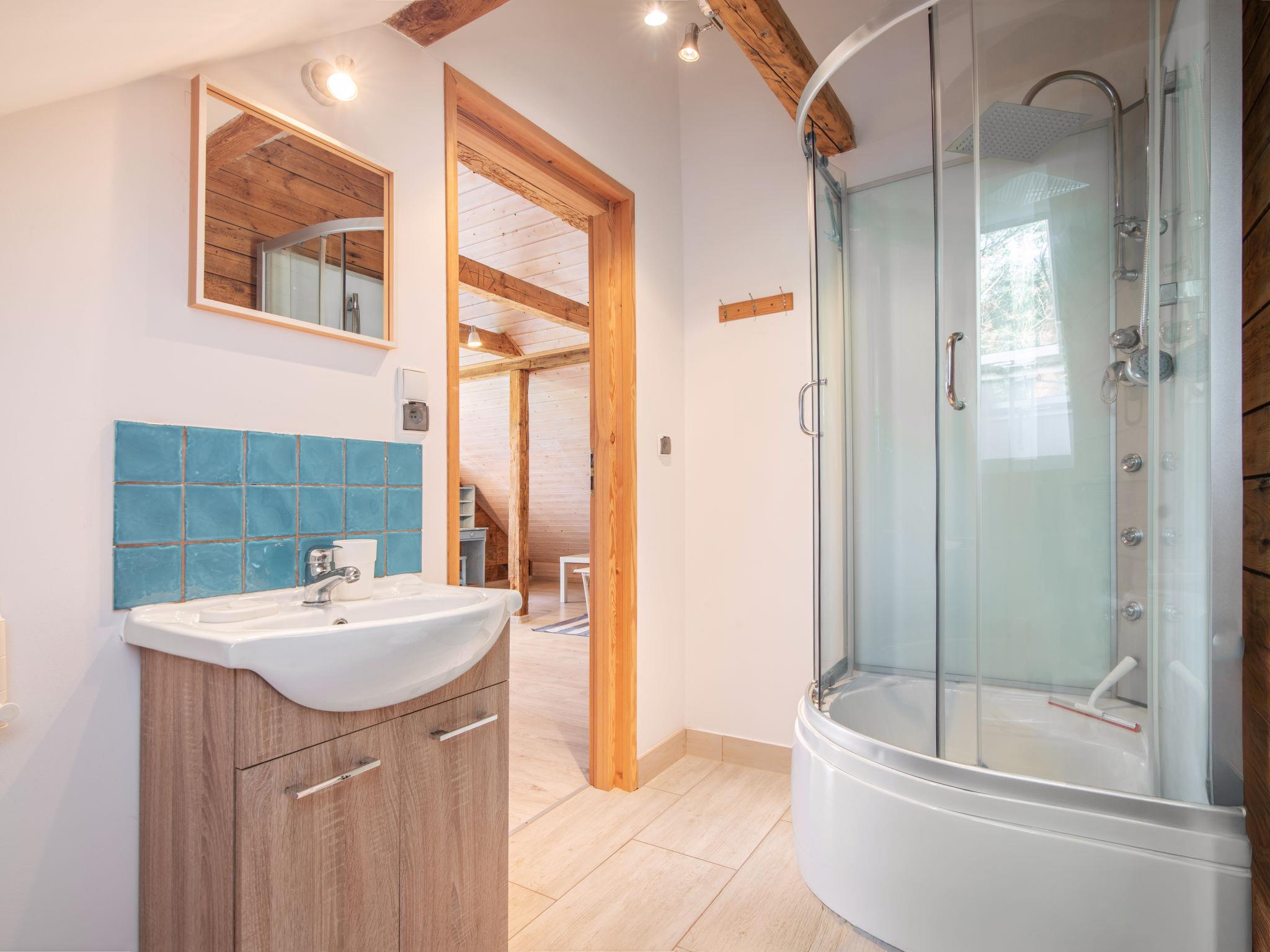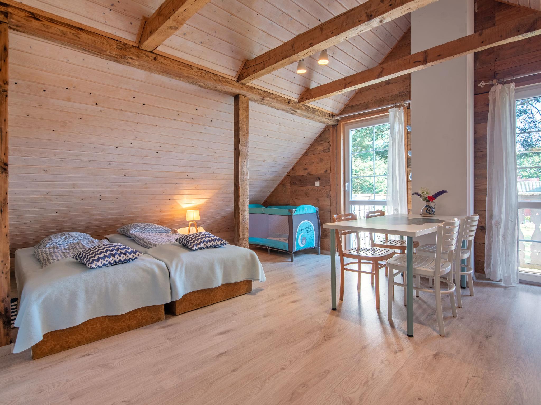 7-room house 300 m2 on 2 levels. Living room 25 m2 with 1 double sofabed. Dining room 50 m2 with open-hearth fireplace, flat screen and radio. Exit to the terrace. 1 room with 2 beds (90 cm, length 200 cm). Open kitchen (oven, 3 ceramic glass hob hotplates) with dining nook. Shower/WC, sep. WC. Upper floor: 1 room 30 m2, with sloping ceilings with 4 beds (96 cm, length 190 cm), dining nook, hand-basin and shower/WC. Exit to the balcony. 1 room 30 m2, with sloping ceilings with 2 beds (90 cm, length 200 cm), 1 double sofabed, dining nook, hand-basin and shower/WC. Exit to the balcony. 1 room 30 m2, with sloping ceilings with 2 beds (96 cm, length 190 cm), 1 double sofabed, dining nook, hand-basin and shower/WC. 1 room 20 m2, with sloping ceilings with 1 double bed (180 cm, length 200 cm), dining nook, hand-basin and shower/WC. Balcony furniture, deck chairs. Facilities: Internet (WiFi). Please note: non-smoking house. Smoke alarm. The fireplace is a decorative function. Group of young people not allowed.