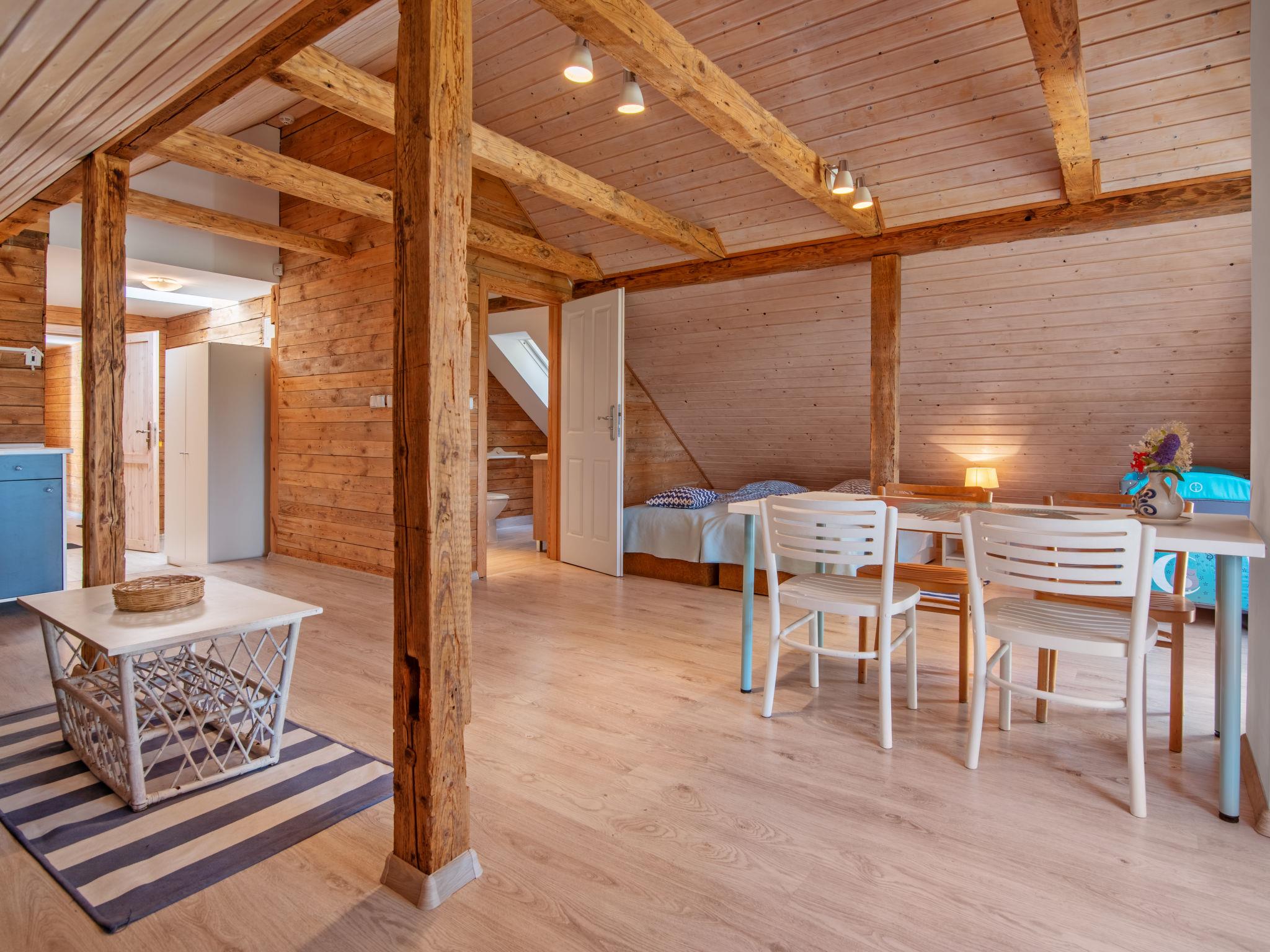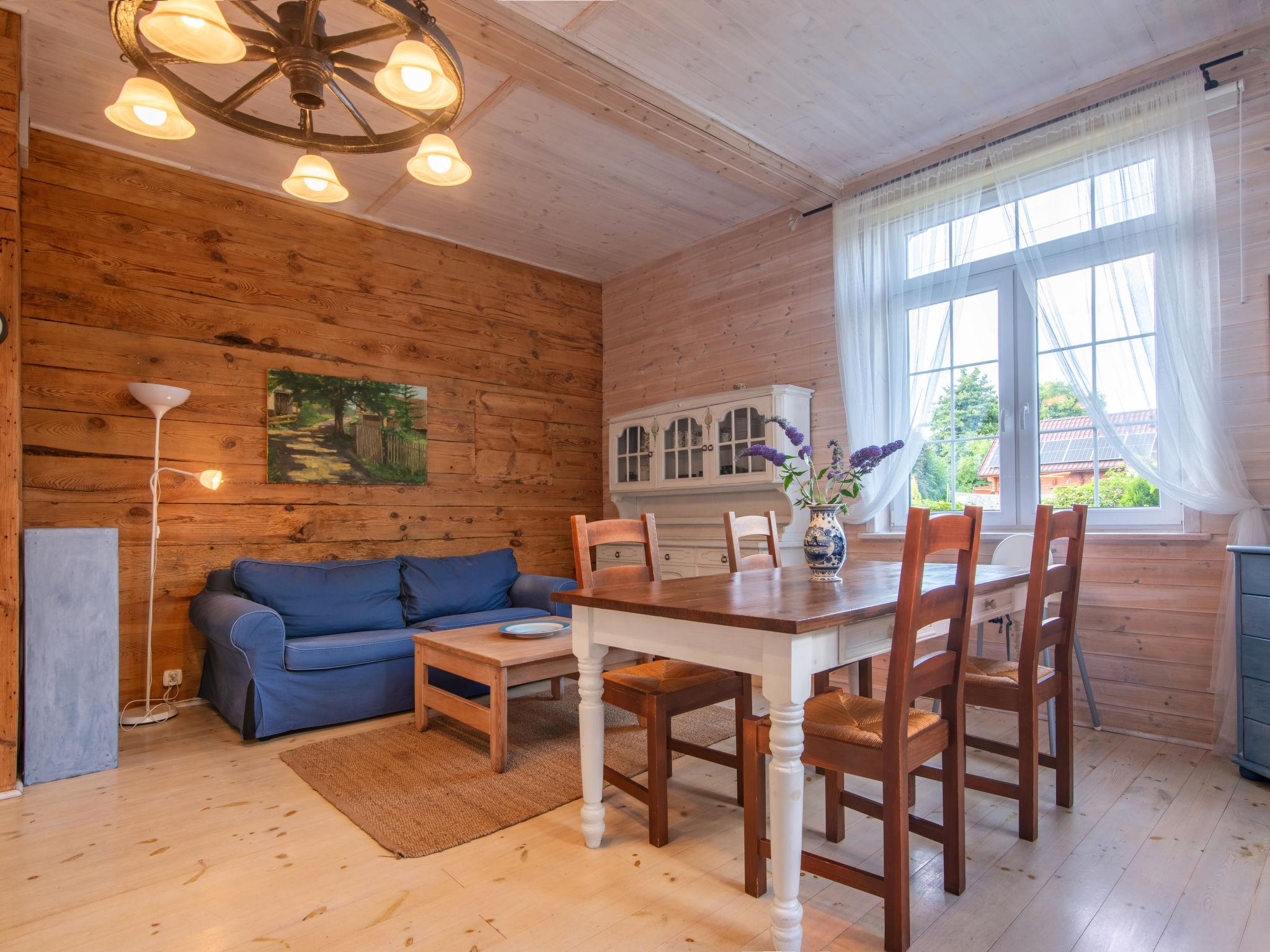 Beautiful timber house "Bursztynowy Dwór", built in 1936, renovated in 2015. In a quiet position, 2.5 km from the sea, in the countryside. Private: property 1'400 m2 (fenced), large, well-kept garden. In the house: WiFi, washing machine. Parking at the house. Shop 400 m, grocery 200 m, supermarket 500 m, restaurant 600 m, bus stop 700 m, railway station 50 km, sandy beach 2.5 km, indoor swimming pool 4.5 km. Golf course (18 hole) 50 km, tennis 1 km, riding stable 500 m, children's playground 700 m. Part of the house is closed and unoccupied. Prohibition fire on the plot.