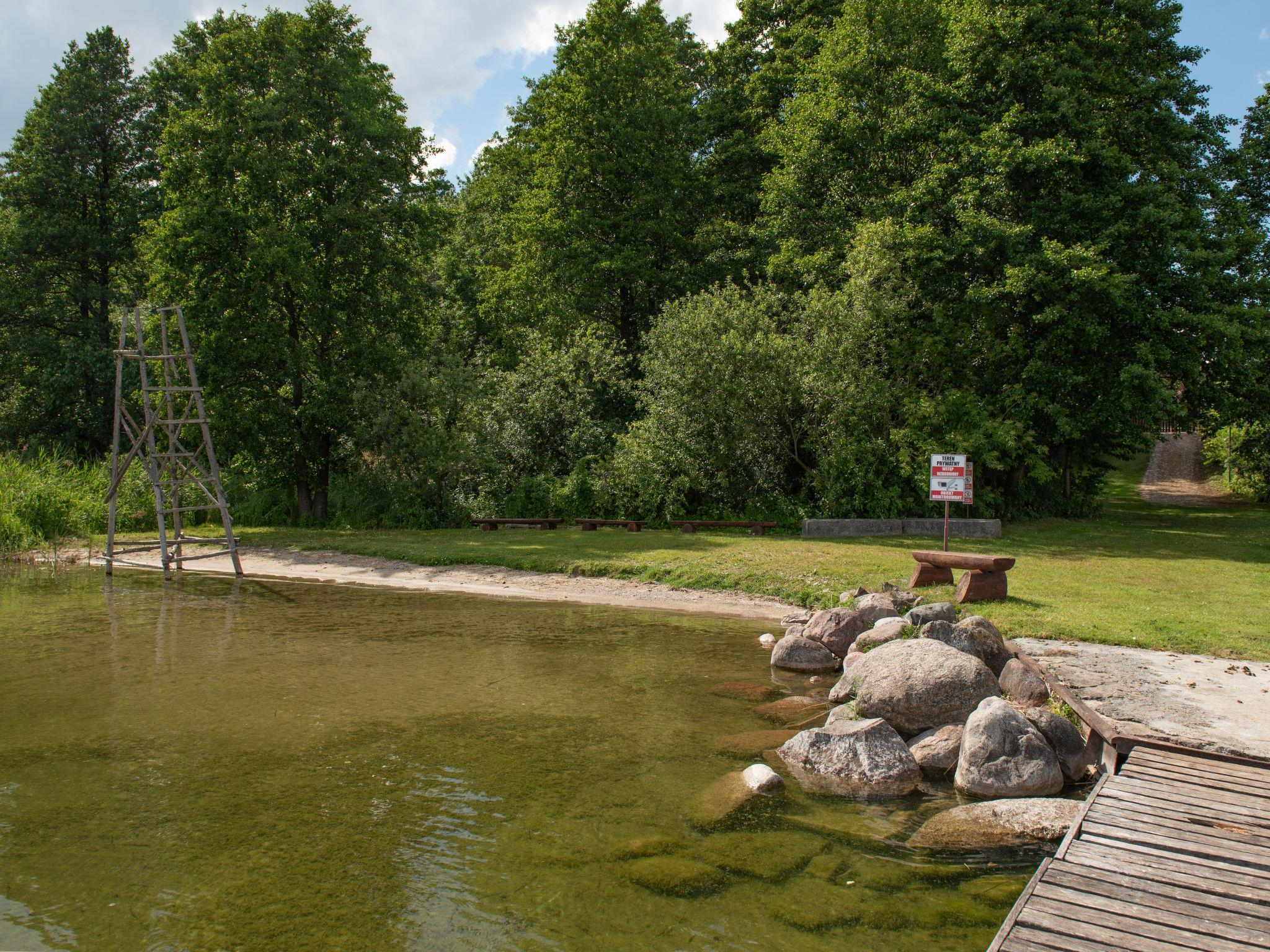Trygort 4 km from Wegorzewo: Historical farmhouse "Perla", built in 1870, renovated in 1990. In a quiet position, 50 m from the lake, in the countryside, in the woods. Private: property 5'000 m2 (fenced). Terrace (30 m2), garden furniture, barbecue, fireplace, barbecue house. In the house: table football, washing machine, heating to be paid on the spot. Available: boat. Motor access to the house (2 km via unmade road). Parking at the house on the premises. Shop 4 km, restaurant 4.5 km, bus stop 4 km, railway station 30 km, grass beach 50 m, bathing lake. Tennis 4 km, riding stable 16 km. Well-known lakes can easily be reached: Mamry 50 m. Please note: car recommended. Fishing [permit required]. Private jetty owner available for guests of the houses PL1156.100.1, PL1156.101.1 and PL1156.102.1.