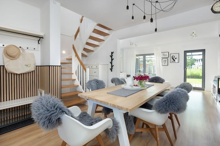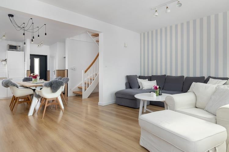 Dette komfortable, dobbelthus beliggende i en rolig del af den smukke ferieby Trzesacz. Stranden ligger 500 meter væk. Trzesacz kan prale af adskillige interessante restauranter og et par butikker, der tilbyder et komplet udvalg af varer. Et smukt, veludstyret feriehus i to etager med privat have. I stueetagen er der en rummelig stue forbundet med køkkenet. Den har et stort bord med stole, et tv, en pejs (brænde kan købes mod et ekstra gebyr) og en sovesofa. Der er også et badeværelse med bruser i stueetagen. Ovenpå er der tre separate dobbeltværelser. Der er centralvarme og pejs. Der er trådløst internet. Huset har en stor overdækket terrasse med havemøbler og grillfaciliteter. Det private hegn giver rigelig plads til solbadning og ubekymret leg for børnene. Der er to parkeringspladser foran huset. Prisen inkluderer el- og vandforbrug, internet og parkering. En barneseng og højstol kan bestilles. Trzesacz er en lille, stemningsfuld ferieby ved Østersøkysten. Den tilbyder en ren strand og et bevogtet svømmeområde. Byen tiltrækker turister, der ønsker at tage billeder med ruinerne af en middelalderkirke, som står ude på en klippe ved havet. Der ligger et højt observationsdæk i nærheden, perfekt til at se spektakulære solnedgange. Den omkringliggende region kan prale af en renoveret smalsporet jernbane, der tilbyder charmerende udflugter til nærliggende feriesteder.